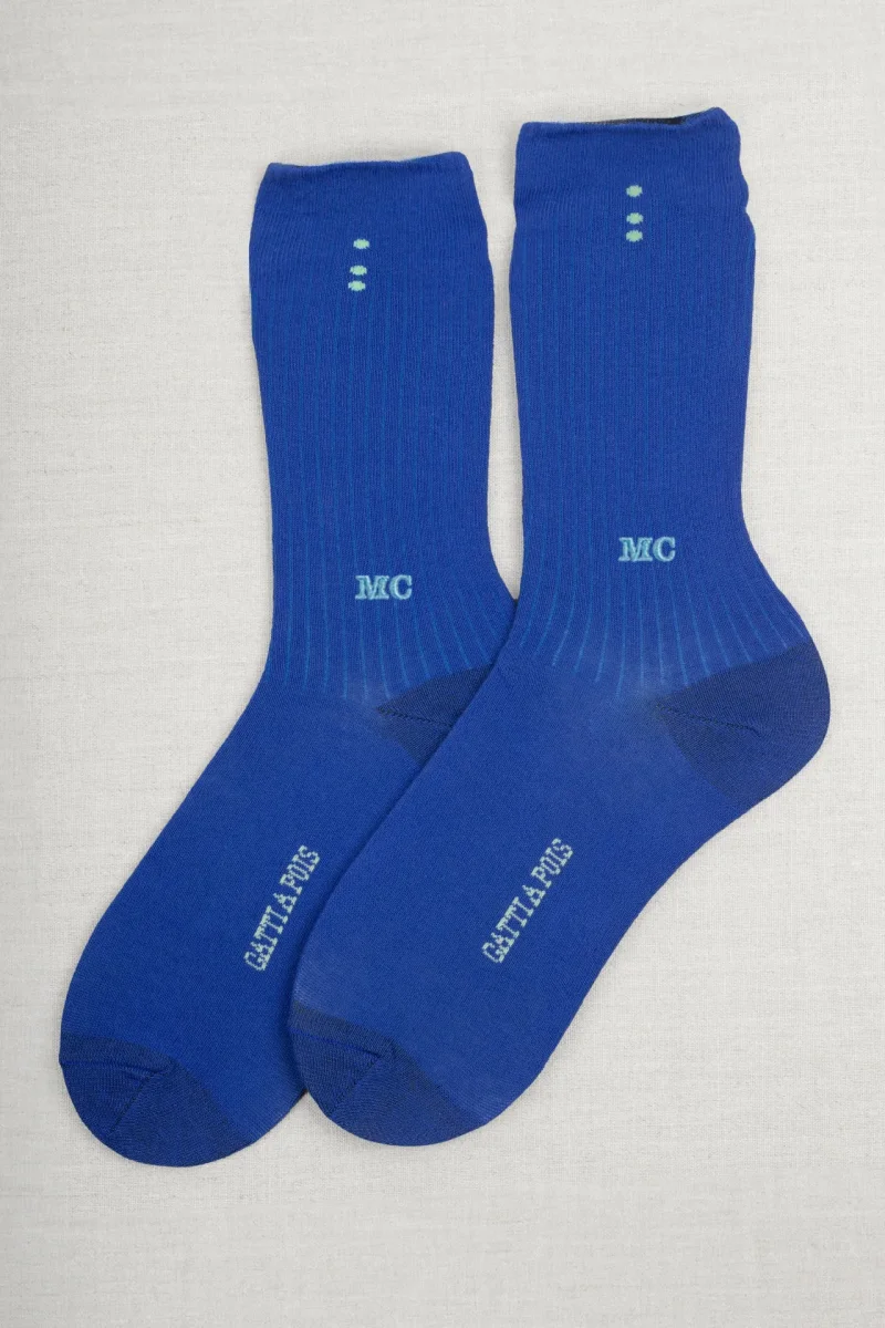 Calze Cromo in Puro Cotone Blu Royal&Lime con Iniziali o Senza!