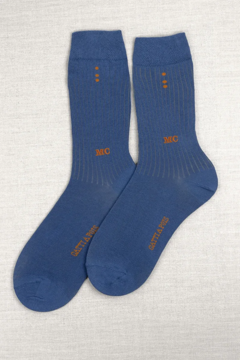 Calze Cromo in Puro Cotone BluAvio&Ruggine con Iniziali o Senza!
