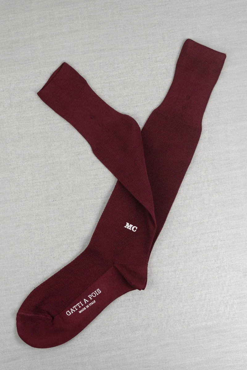 Calze da Donna in Filo di Scozia Bordeaux a lavorazione Piquet con Iniziali o Senza!