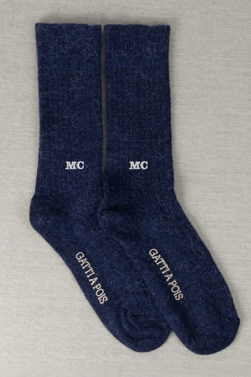 Calze Mezzagamba in Alpaca color Blu Notte con Iniziali o Senza!