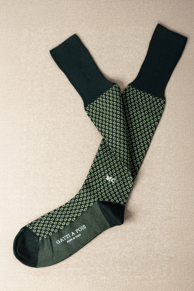 Calze Microbolle in Filo di Scozia Lavorazione Jacquard VerdeLoden&Salvia con Iniziali o Senza!