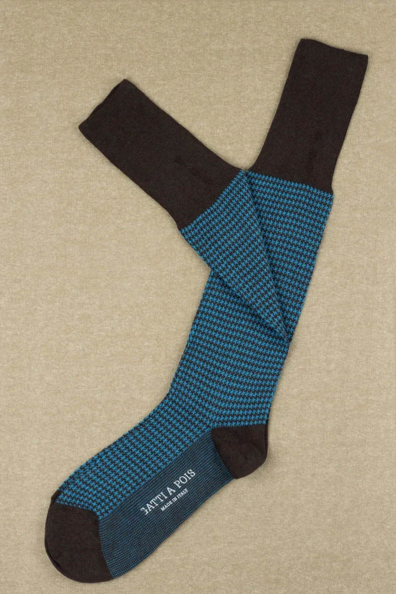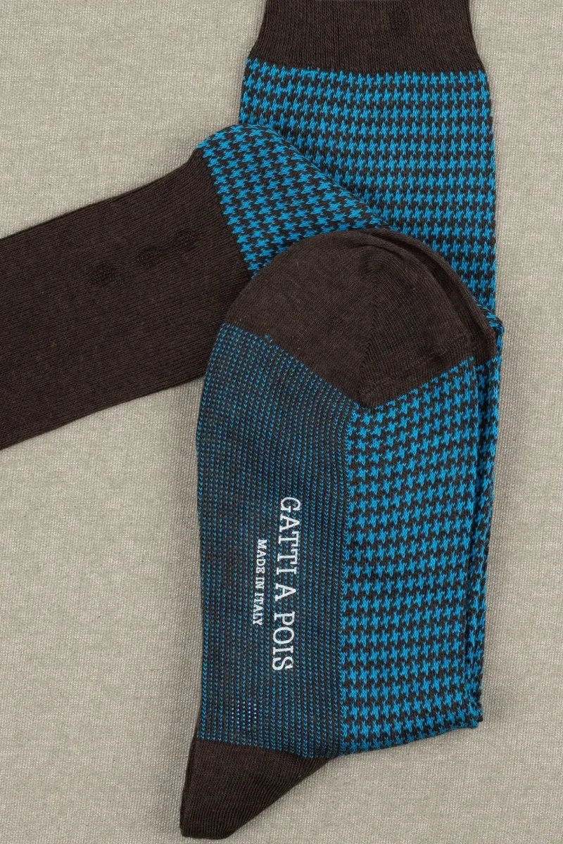 Calze Moro&Turchese Pied de Poule in Cotone Pettinato con Iniziali o Senza!