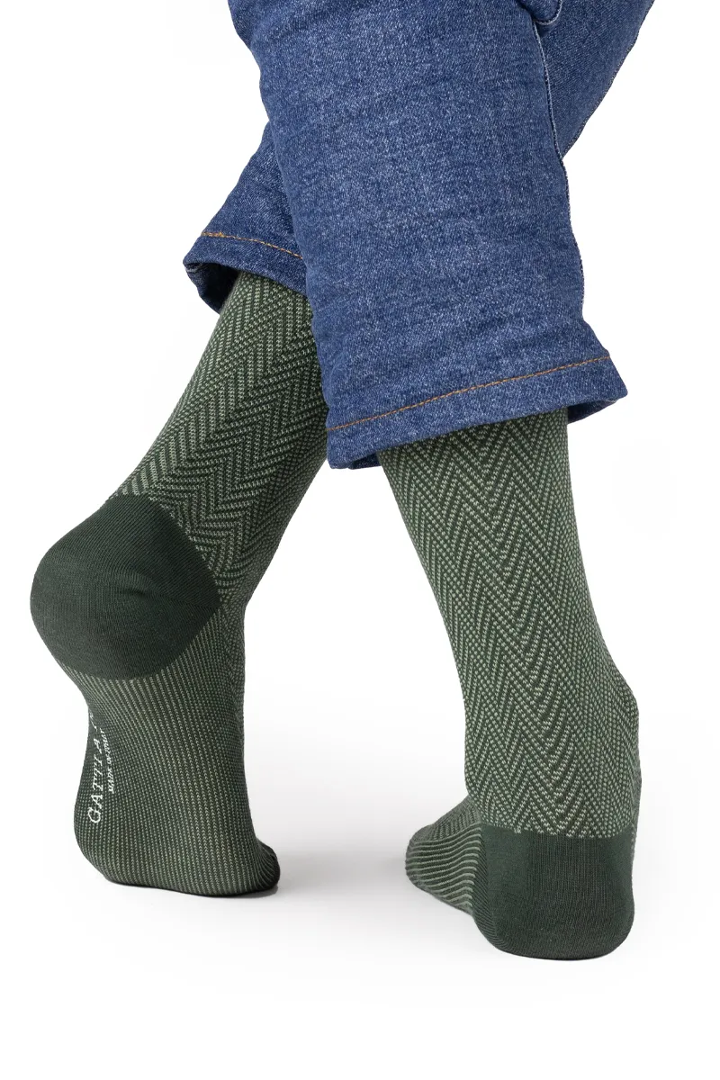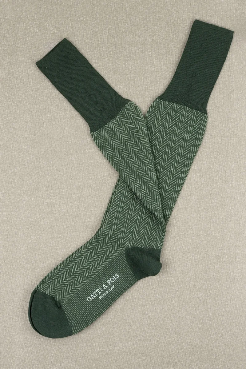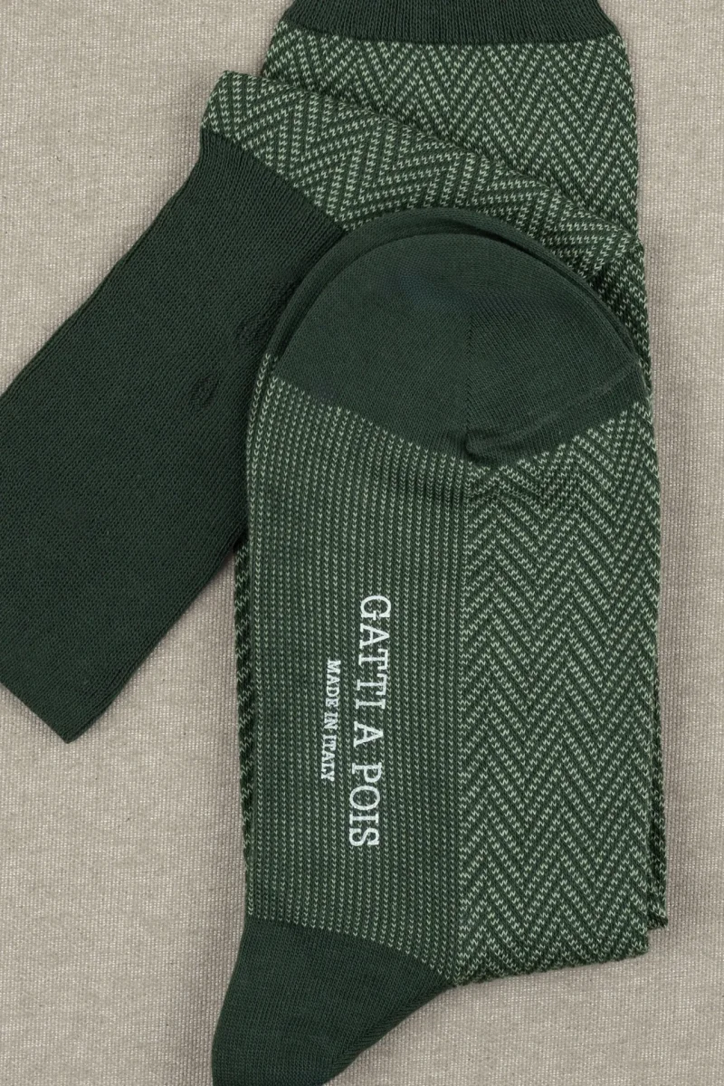 TIPOLOGIA: CALZE LUNGHE DA UOMO MATERIALE: COTONE PETTINATO FANTASIA: SPIGATA A LISCA DI PESCE COLORE: RINFORZI COLOR FORESTA, LISCA DI PESCE VERDONE&PISTACCHIO Caratterizzano questa Calza Lunga al ginocchio, Morbidezza e Calzabilità rare, Che contraddistingue il Nostro Marchio. Le Calze Spigate sono tra le Calze più apprezzate di Gatti a Pois e sono disponibili in vari Colori e Filati. Ogni due mesi circa vengono creati nuovi accostamenti e varianti colori che potrete trovare nei Reparti oppure nei Box. Risparmia con i Box proposti da Noi per questo tipo di Prodotto: BOX CALZE LUNGHE COMPOSIZIONE: 90% Cotone Pettinato 7% Poliammide 3% Elastan…