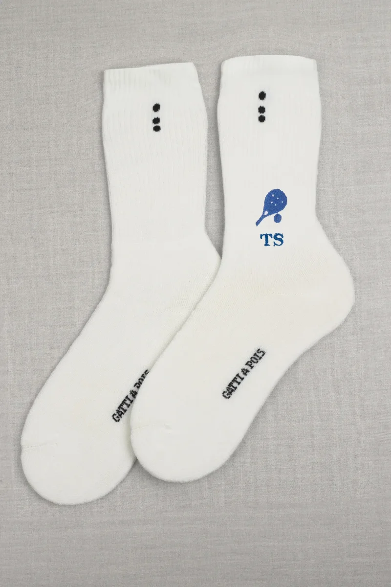 Calze Made in Italy Realizzate con COTONE PETTINATO ITALIANO lavorazione Spugna. Il Ricamo della racchetta da Padel insieme alle Tue iniziali viene fatto al momento, potrai scegliere il Colore del Filo