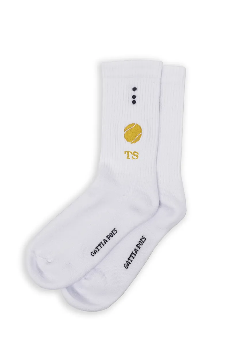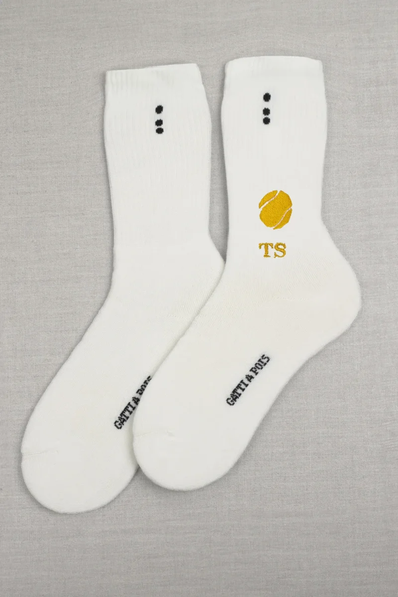 Calze Made in Italy Realizzate con COTONE PETTINATO ITALIANO lavorazione Spugna. Il Ricamo della Palma da Tennis insieme alle Tue iniziali viene fatto al momento, potrai scegliere il Colore del Filo