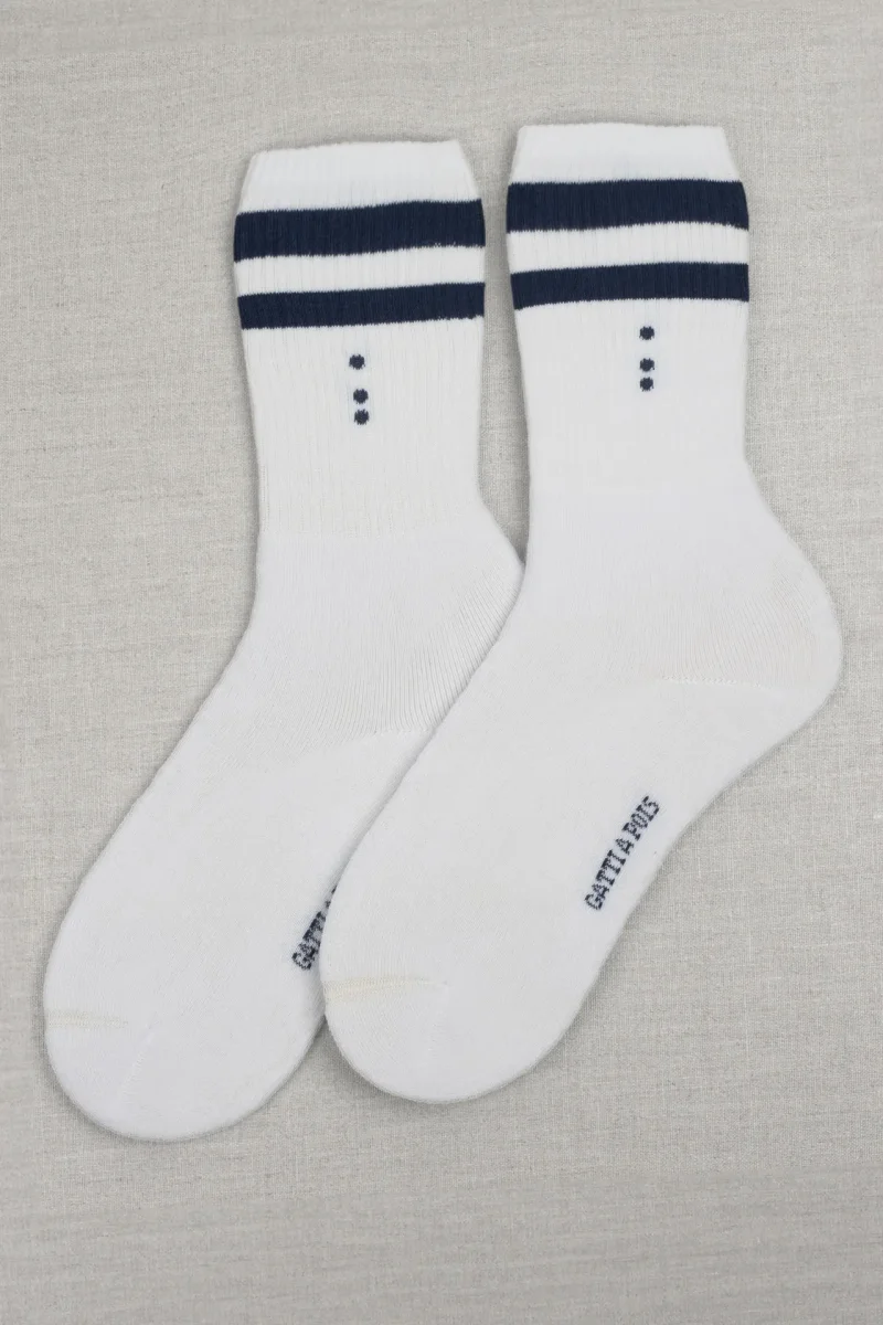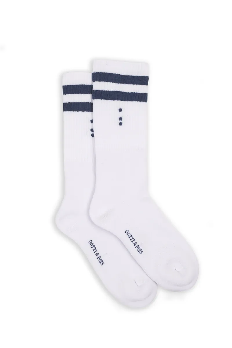 TIPOLOGIA: CALZA SPORTIVA UNISEX MATERIALE: COTONE PETTINATO ITALIANO FANTASIA: DESIGN SPORTIVO COLORE: SFONDO BIANCO, RIGHE BLU Calza Sportiva Unisex, MADE IN ITALY a partire dal Disegno fino ad arrivare ai Filati e alla Lavorazione Artigianale. Realizzata con COTONE PETTINATO ITALIANO lavorazione Spugna. Massimo Comfort e durata ineccepibile. Le singole Calze vengono trattate con un LAVAGGIO extra con Follatura, utilizzando l’Ammorbidente Cachemire che dona loro morbidezza permanente. Hanno una misura di cm 26 dal tallone, perfette per Sneakers o scarpe Medio Alte. Disegnato e Realizzato in Italia da Gatti a Pois, utilizzando Filati di Prima scelta Made in Italy. COMPOSIZIONE: 80% Cotone…