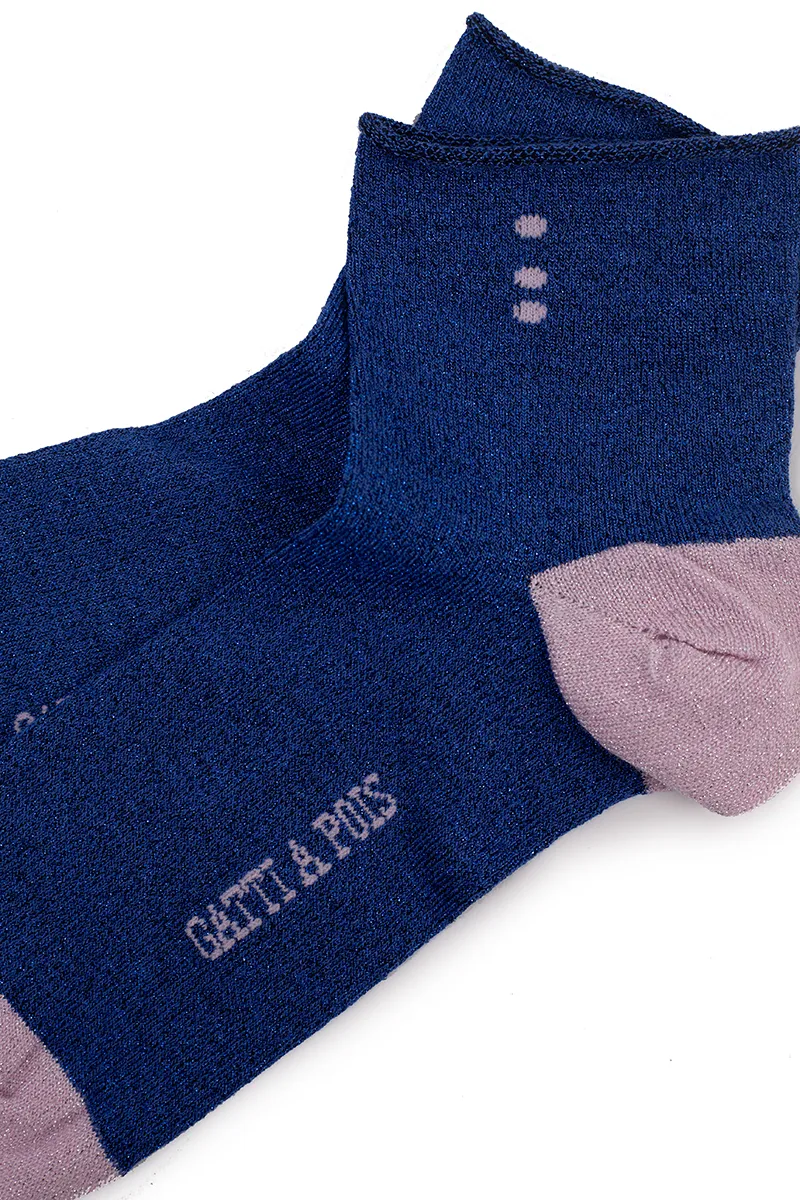 TIPOLOGIA: CALZINI DA 4CM STAGIONE: 4 STAGIONI MATERIALE: COTONE E LAME’ NATURALE COLORE: BLU ELETTRICO E ROSA CONFETTO Calza da Donna Lunghezza Media, Disegnata, Creata e Prodotta totalmente da Gatti a pois, In Italia con Cotone Pettinato 100% Italiano Monticolor. Adatta al look di ogni giorno. COMPOSIZIONE: 80% Cotone 10%Poliammide 5% Elastan 5% Lamè Risparmia con i Box proposti da Noi per questo tipo di Prodotto: BOX CALZE DONNA Manutenzione: Si consiglia di lavare a mano o in lavatrice temperatura massimo 40º, ancor Meglio se le lavate al Contrario. NON UTILIZZARE ASCIUGATRICE. Non stirare. Potrete inoltre decidere se acquistarle Semplici…