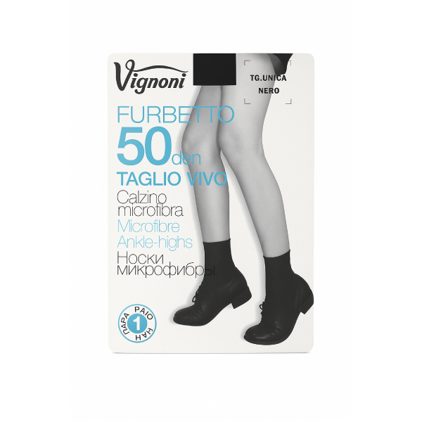 Interamente prodotto in Italia, il calzino Furbetto50 conferma l’impegno di Vignoni nel realizzare articoli d’intimo di qualità superiore, curati in ogni dettaglio e capaci di coniugare estetica e comfort.