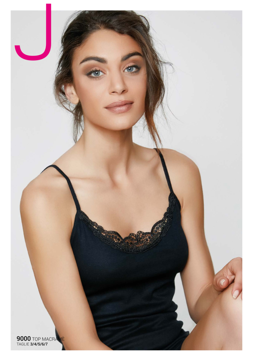 Canotta Jadea a spalla stretta con scollo in pizzo macramè. Disponibile in confezione da 3 pezzi per taglia e colore Canotta donna a spalla stretta in morbido cotone mercerizzato con inserti macramè. Composizione: CO100