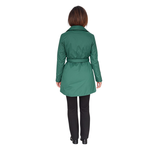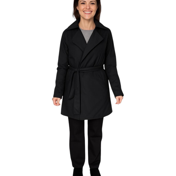 Il modello è arricchito da un taglio svasato e da un fondo posteriore leggermente più lungo. Ciò migliora la copertura e dona una linea elegante. Le tasche laterali a filetto aggiungono praticità, mentre la cintura permette di definire la silhouette con semplicità. Il risultato è un cappotto raffinato ma facile da indossare.