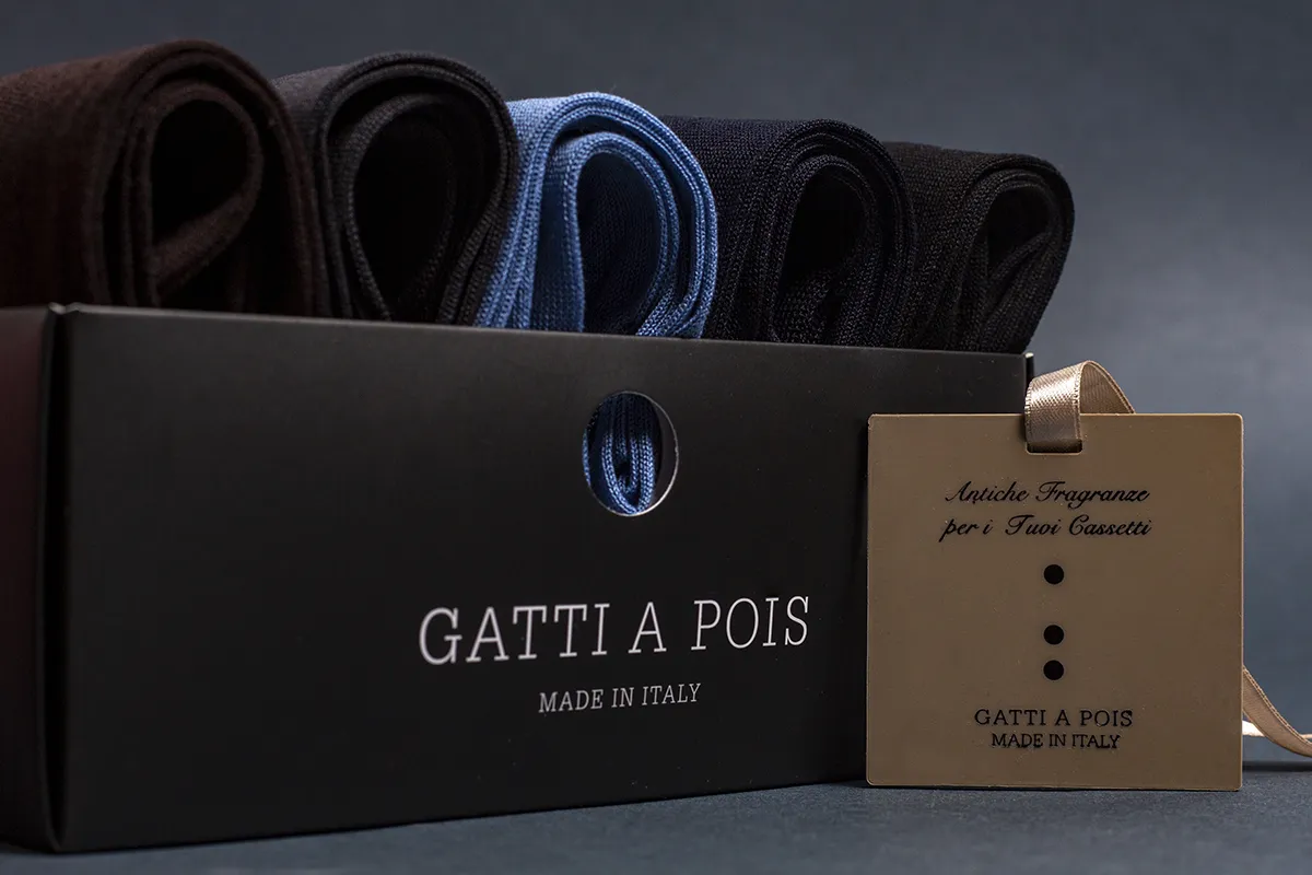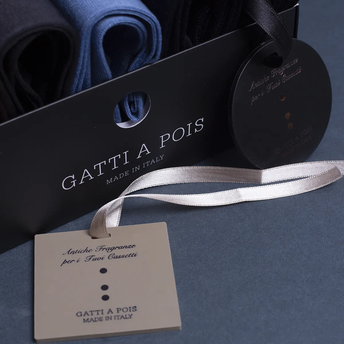 Gatti a Pois ha prodotto per Voi un accessorio per completare anche dal punto di vista olfattivo, la Classe dei vostri Cassetti. Una Card in Morbida Gomma profumata da inserire accanto alle Calze di Alto livello e di qualità che vi assicurerà per mesi una Fragranza intramontabile e delicata. Aprirete i Vostri cassetti, per scegliere il Colore o il Modello delle calze da indossare per la giornata e sarete inebriati dalla fragranza di un tempo… Abbiamo selezionato due Fragranze, adatte ad olfatti esigenti e Eleganti. Una raffinatezza discreta in un oggetto inedito e che completerà l’Ordine e la purezza dei vostri…