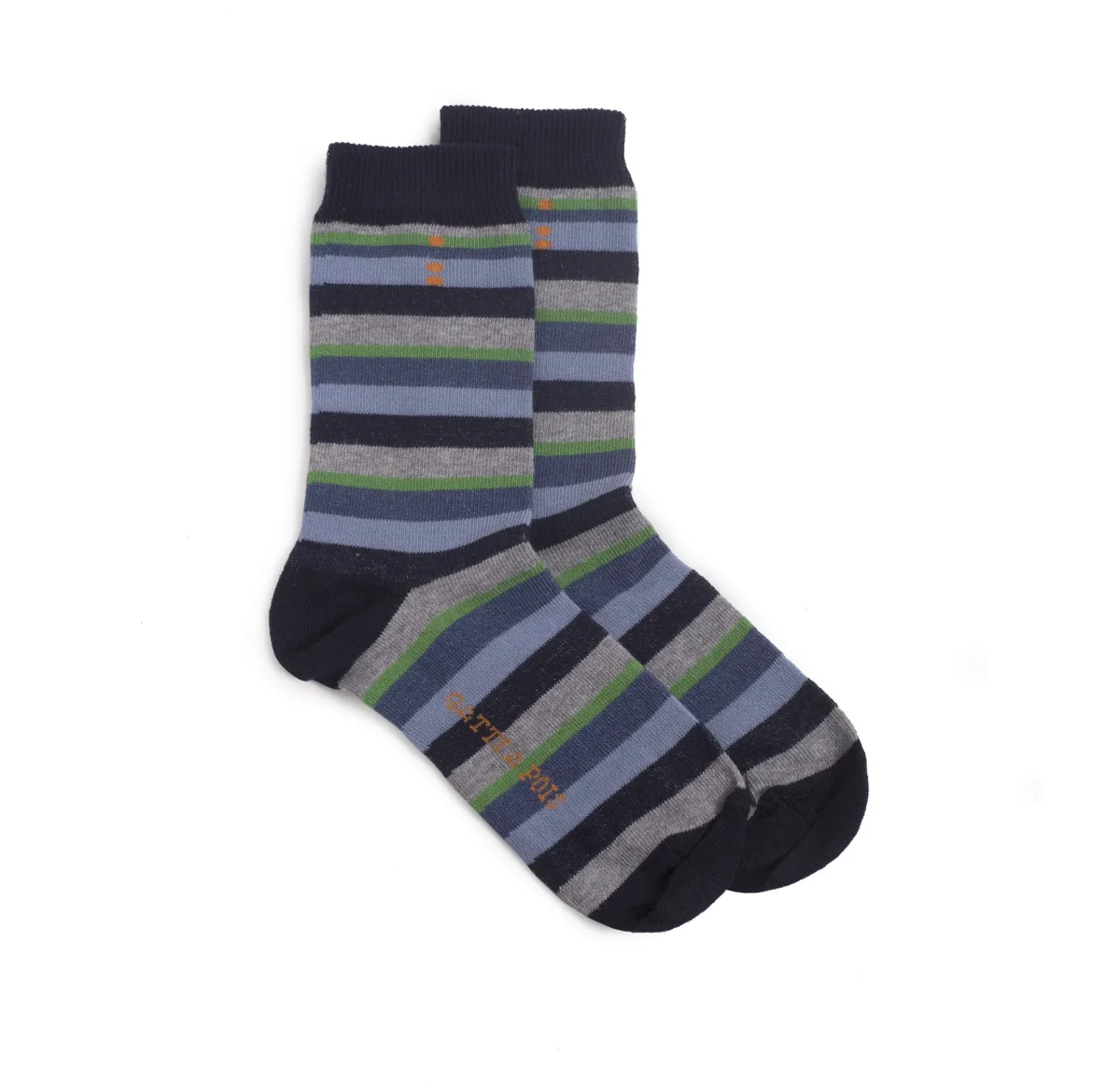 TIPOLOGIA: CALZA lunghezza media BAMBINO STAGIONE: 4 STAGIONI MATERIALE: COTONE PETTINATO FANTASIA: RIGHE COLORE: RINFORZI BLU NOTTE,GRIGIO MELANGE,VERDE,AVIO E AZZURRO Calza da bambino a 3/4, fatta a mano in Italia in cotone pettinato. Pattern a RIGHE dai colori allegri e decisi. COMPOSIZIONE: 80% Cotone 17%Poliammide 3% Elastan Manutenzione: lavare a mano o in lavatrice temperatura massimo 40º. NON UTILIZZARE ASCIUGATRICE. Non stirare. Le Classic Lines, sono calze di Gatti a Pois ideate e realizzate per i nostri bambini. Sono stati utilizzati filati di primissimo livello e totalmente Made in Italy, dalla progettazione del disegno al rimaglio a mano fino al…