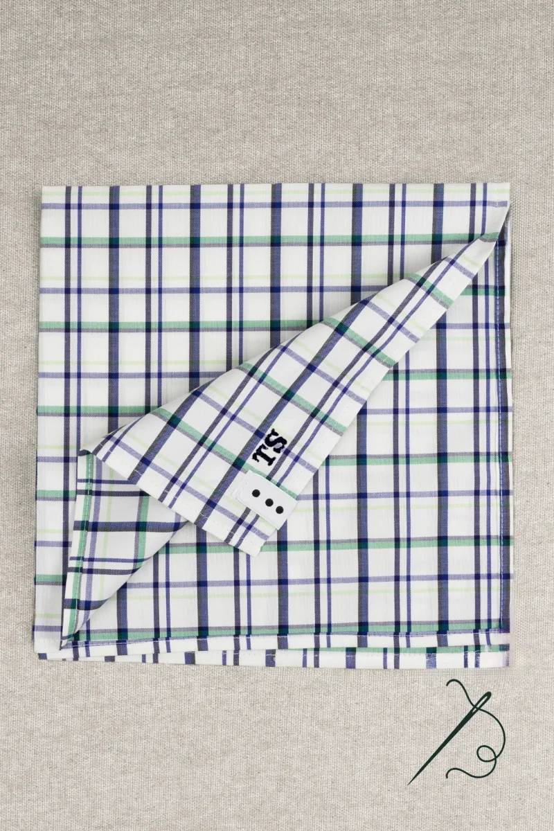 Fazzoletto in Puro Cotone Italiano a Quadri con Iniziali Ricamate