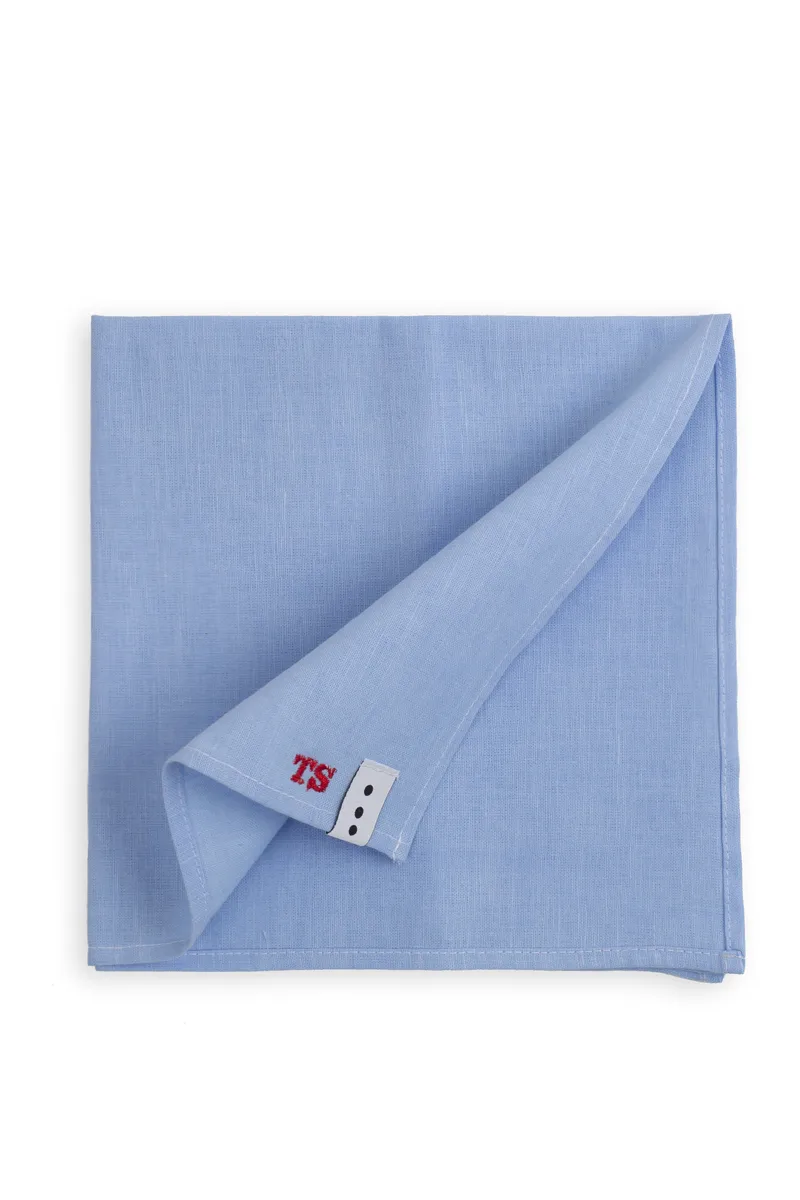 Fazzoletto in Puro Cotone Italiano AZZURRO con Iniziali Ricamate