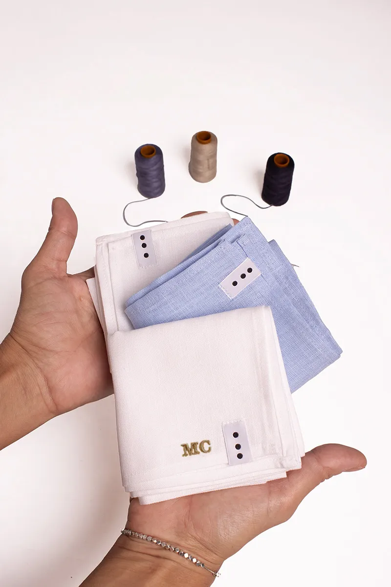 Box Lux N.5 Fazzoletti Bianchi&Azzurri da Naso con Iniziali Ricamate