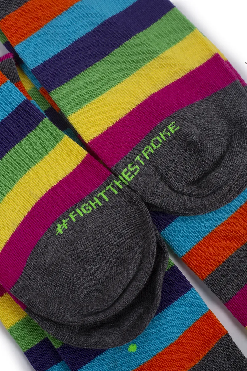 #Fightthestroke Calze Sportive lunghe Donna con Polso a Righe puro Cotone Italiano