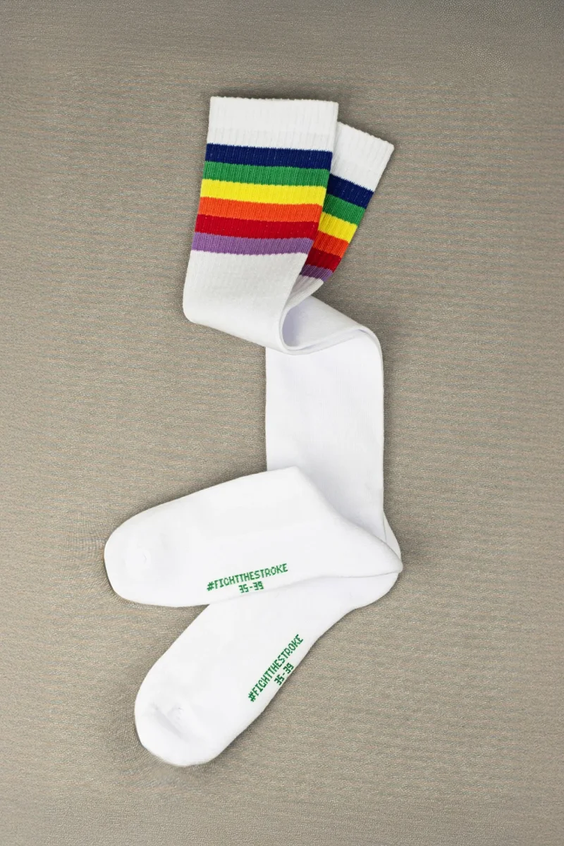 #Fightthestroke Calze Sportive lunghe Donna con Polso a Righe puro Cotone Italiano