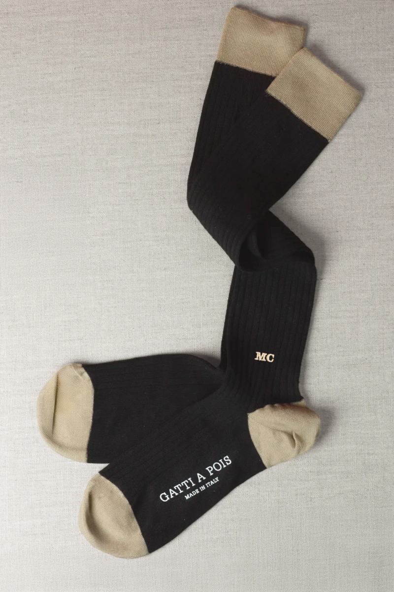 Gambaletti da Donna in Cotone Pettinato Nero&Beige con Iniziali o Senza!
