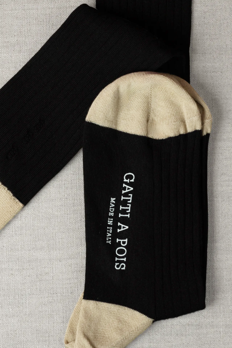 TIPOLOGIA: CALZA LUNGA DONNA MATERIALE: COTONE ITALIANO COLORE: NERO E CONTRASTI BEIGE Questa calza in puro COTONE ITALIANO, Rinforzate su Tallone e punta, assicurano durata nel tempo e confort. Comodità ed MORBIDEZZA grazie a queste calze in PURO COTONE a costine da 3 a 1 (millimetri), morbide e calde. Le cuciture sono piatte per un comfort perfetto ai piedi. Gatti a Pois ha deciso di introdurre nel proprio negozio Online una vasta gamma di colori di calze in Cotone o Filo di Scozia, per accontentare la maggior parte di donne, dalla sportiva, all’elegante, dalla casual all’anticonformista. COMPOSIZIONE: 80% Cotone, 17% Poliammide,…