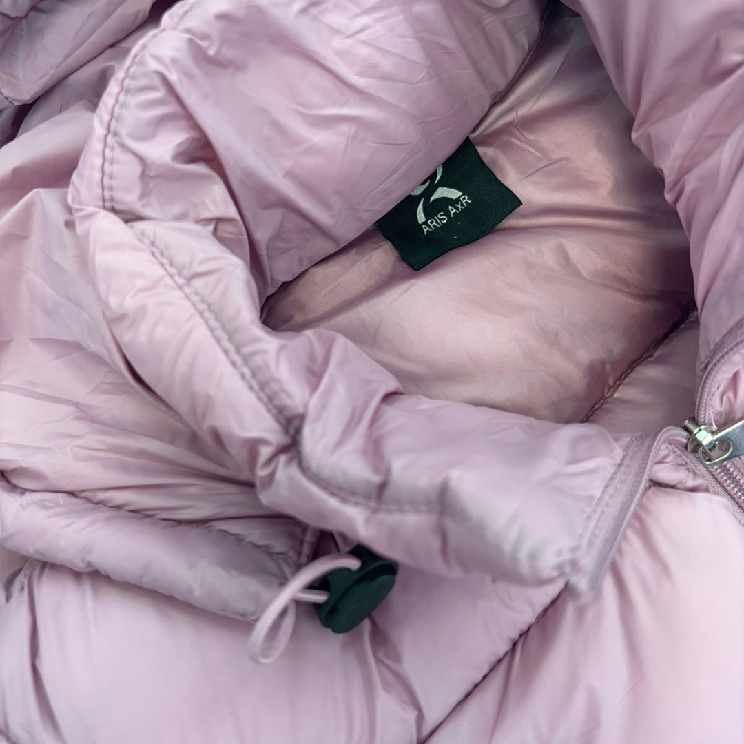 Giubbino donna 300 grammi Aris AXR con cappuccio, pratiche tasche interne e imbottitura in 100% piumino di cotone. Disponibile nei colori malva, blu e nero.