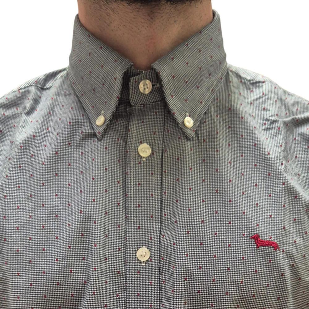 camicia non può rinunciare al suo simbolo distintivo: il bassotto Blaine sotto forma di ricamo a contrasto sul petto.