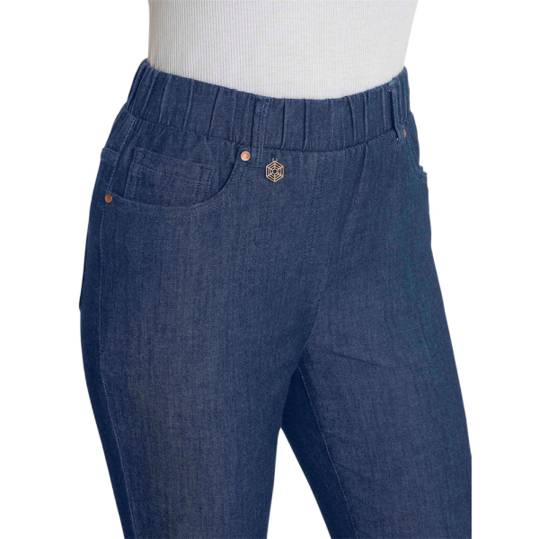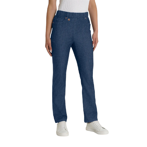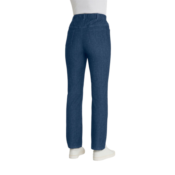 La struttura a gamba dritta donna in light denim segue la linea della figura con equilibrio, senza costringere né appesantire la forma. La vita elasticizzata garantisce una vestibilità confortevole e adattabile, ideale per valorizzare diverse corporature con naturalezza, mentre le cinque tasche classiche aggiungono funzionalità e carattere, perfette per l’uso quotidiano.