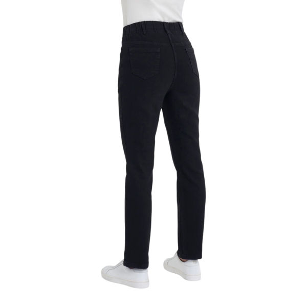 Questo modello è dotato di una vita elasticizzata che assicura comodità e praticità, mantenendo comunque un aspetto elegante grazie alla presenza dei passanti per cintura. Potrai così aggiungere un tocco personale al tuo outfit senza rinunciare alla funzionalità. Le cinque tasche rendono il capo pratico e ideale per l’uso quotidiano.