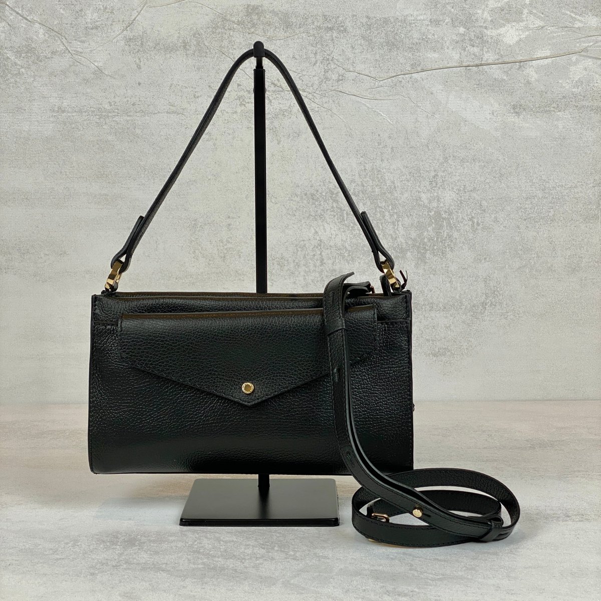 - Tracolla staccabile e regolabile in pelle