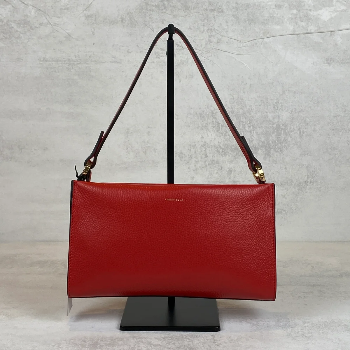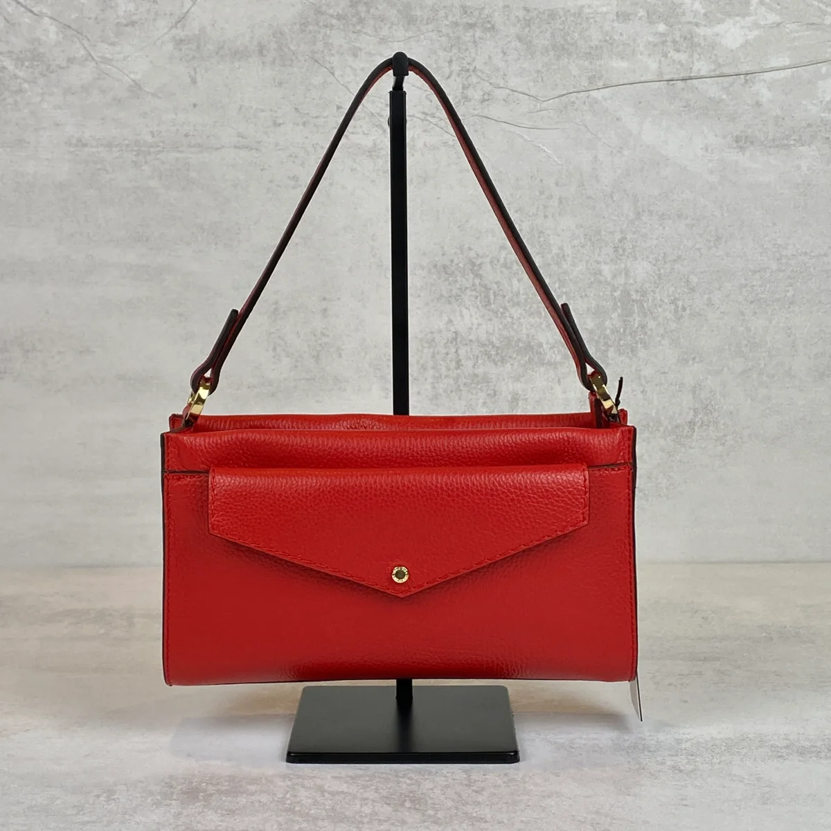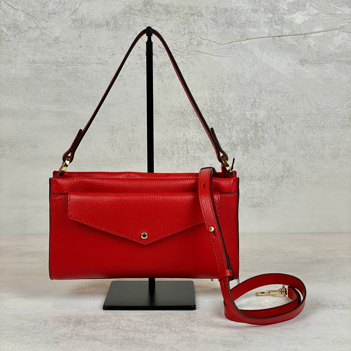 Dettagli prodotto: Borsa in vera pelle stampa dollaro Colore rosso Accessori metallici color oro Chiusura con cerniera Tasca interna con cerniera Tracolla staccabile e regolabile in pelle Bustina estraibile con manico in catena Misure: 26x15x7 cm Made in Italy Codice: 2917