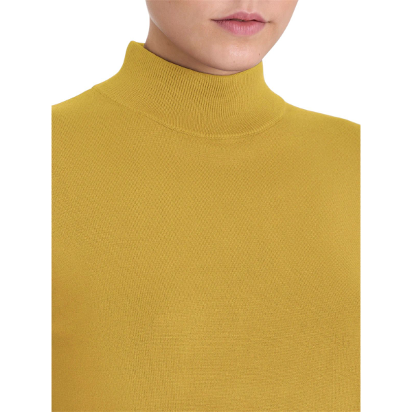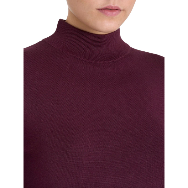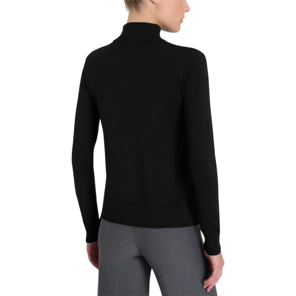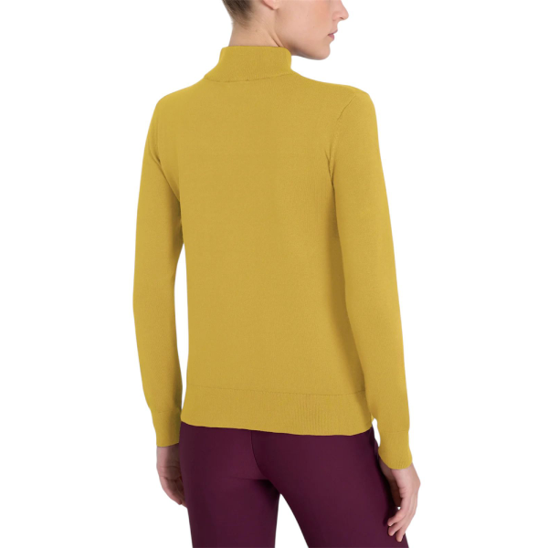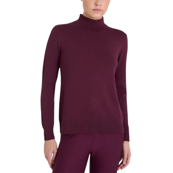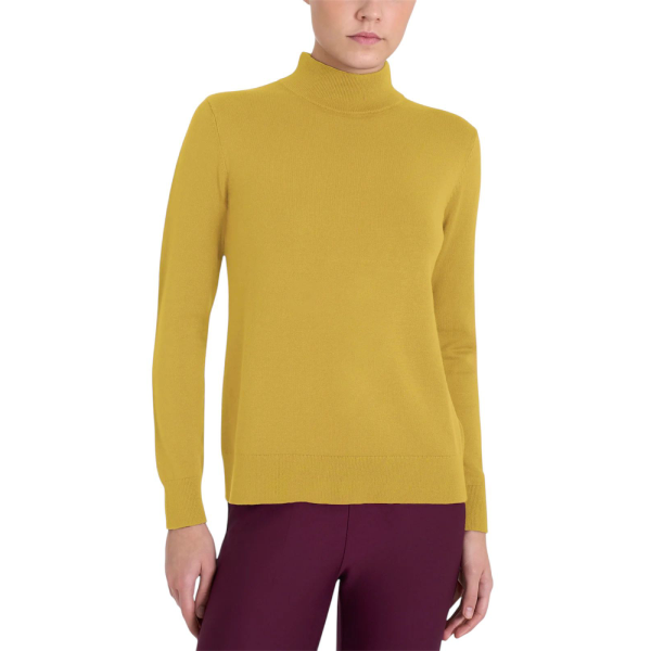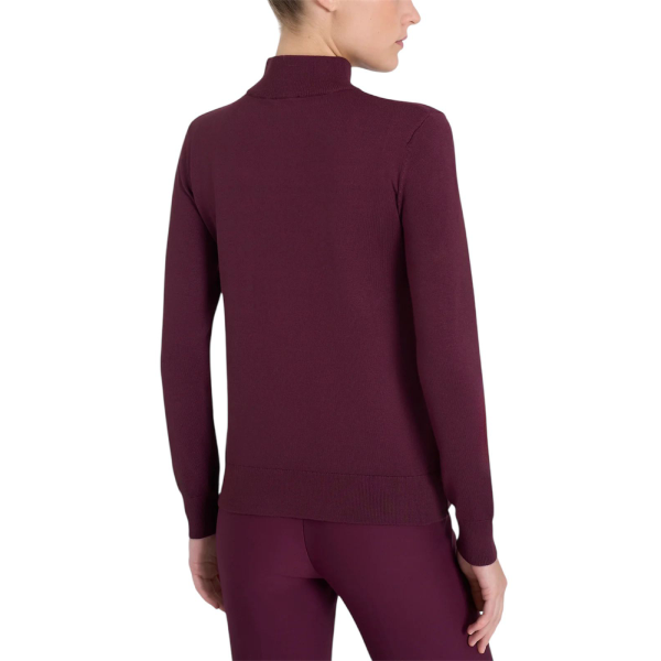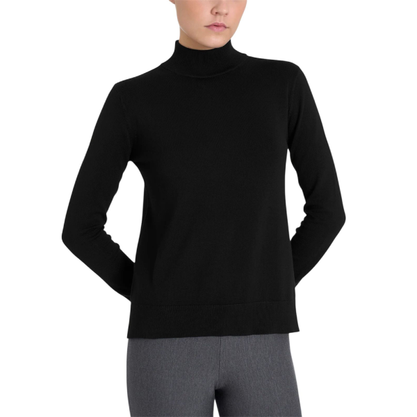 Realizzato in maglia rasata finezza 12, avvolge la pelle con una sensazione morbida e setosa. Inoltre, la struttura leggera garantisce comfort costante e piacevole traspirabilità. Il collo a lupetto dona una linea pulita e sofisticata, mentre gli spacchetti laterali aggiungono fluidità e naturalezza al movimento.