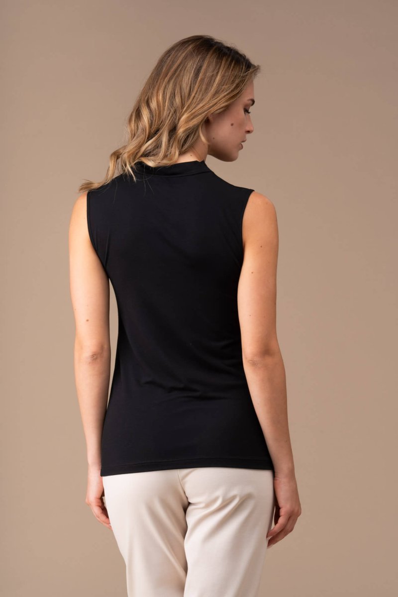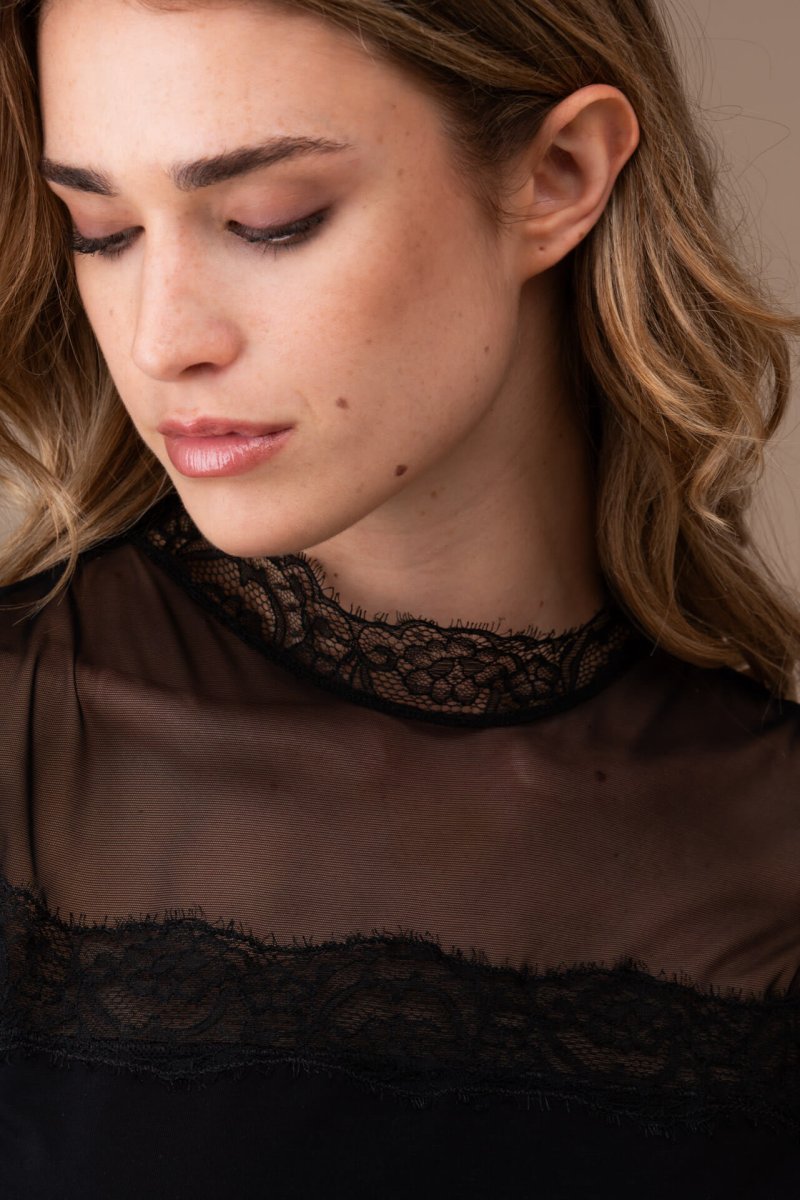 Elegante lupetto smanicato in micromodal, pizzo e tulle.