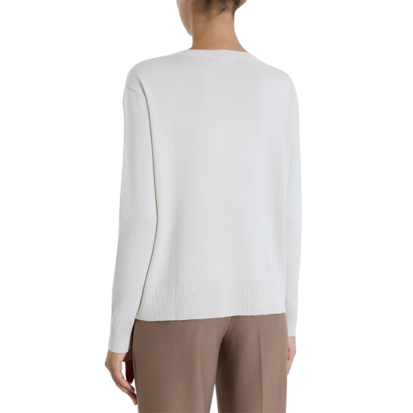 Il girocollo classico è rifinito con bordatura a costina 2×2, dettaglio che definisce la linea con discreta eleganza. Lo stesso motivo è presente su fondo e polsini, creando una continuità visiva armoniosa. La vestibilità boxy, ampia e dritta, dona al capo un’allure moderna e rilassata. Al tempo stesso, le maniche a pipistrello valorizzano la silhouette con un effetto morbido e avvolgente, garantendo libertà di movimento e massimo comfort.
