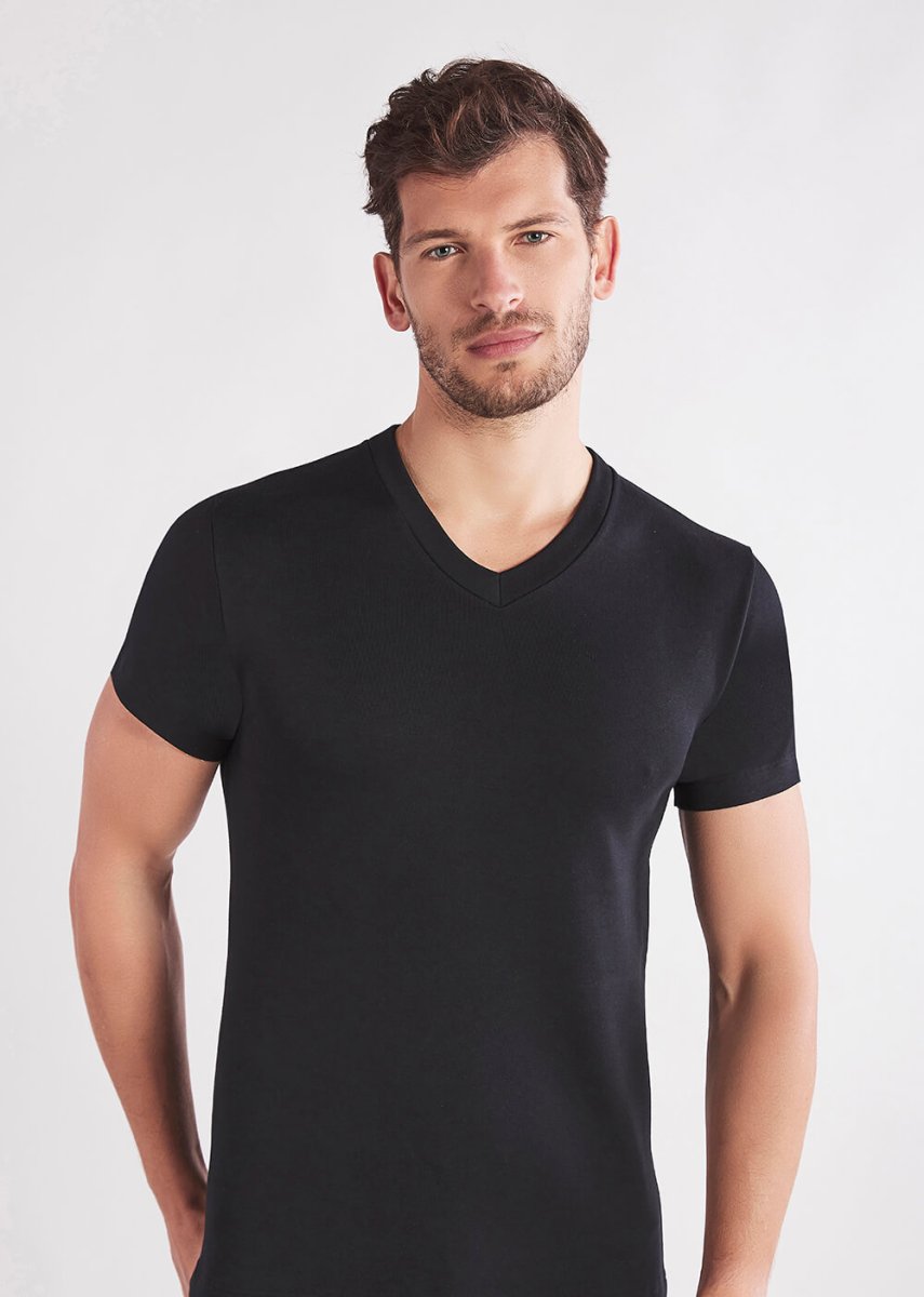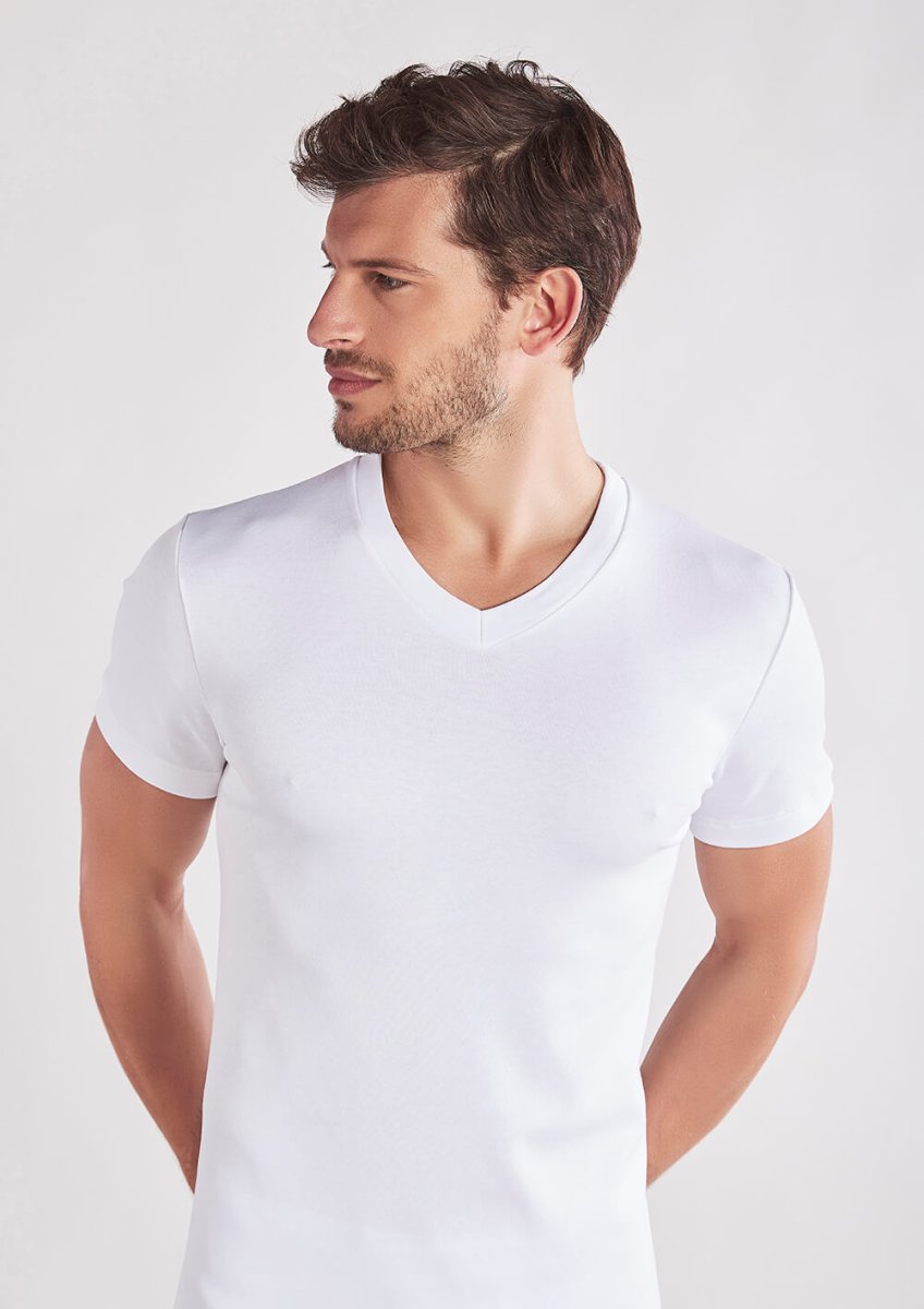 Maglia scollo V manica corta in caldo cotone