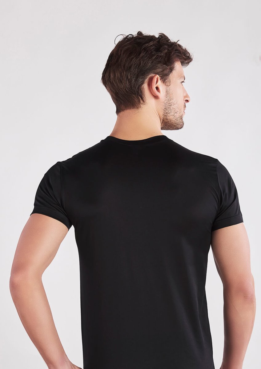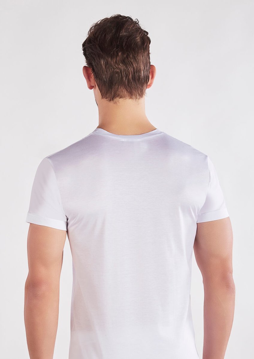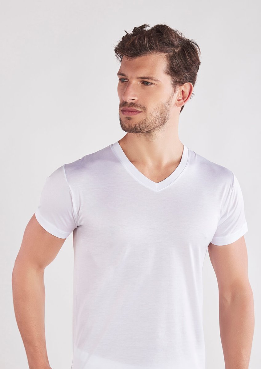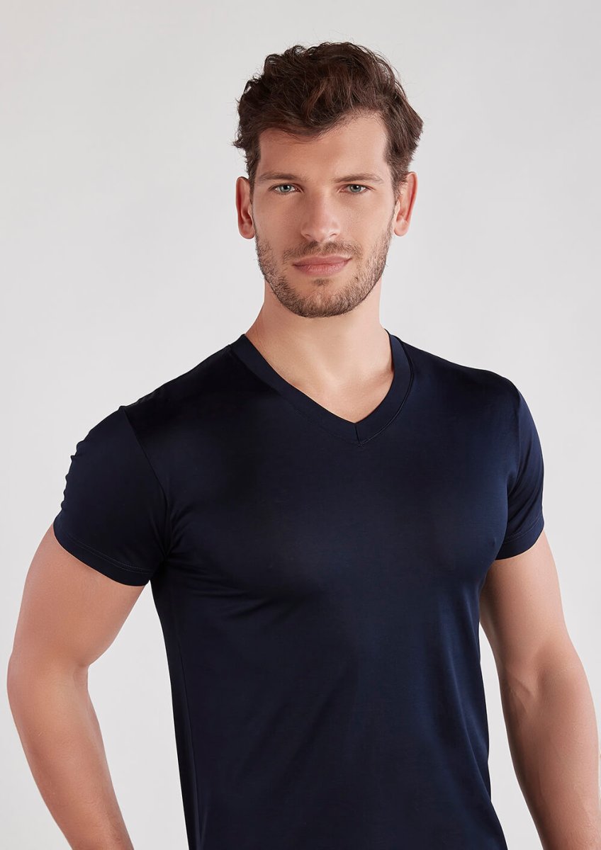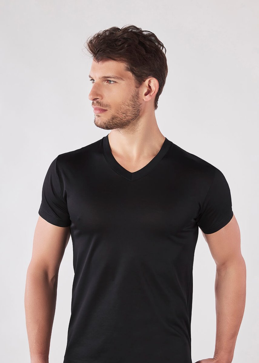 Maglia a scollo V e maniche corte confezionata in finissimo jersey di cotone ritorto setificato Easy® – il filo di Scozia confortevole. Un capo intimo di qualità che unisce praticità, morbidezza e freschezza. Perfetto come sottogiacca o come maglia estiva da indossare a vista.
