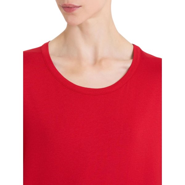 Il modello presenta un girocollo classico e maniche corte, elementi che lo rendono semplice ma distintivo. La vestibilità soft, con fit morbido e lunghezza di 66 cm (tg. 2), garantisce libertà di movimento e si adatta con naturalezza a tutte le fisicità, assicurando comfort e stile in ogni occasione.