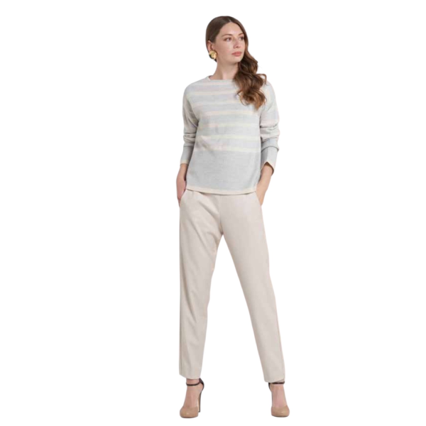 Grazie alla sua versatilità, questo maglione può essere indossato in molteplici occasioni. È perfetto con jeans o pantaloni casual per un look quotidiano, ma si abbina facilmente anche a gonne e outfit più ricercati. In questo modo potrai creare combinazioni sempre nuove, mantenendo un aspetto curato e femminile.