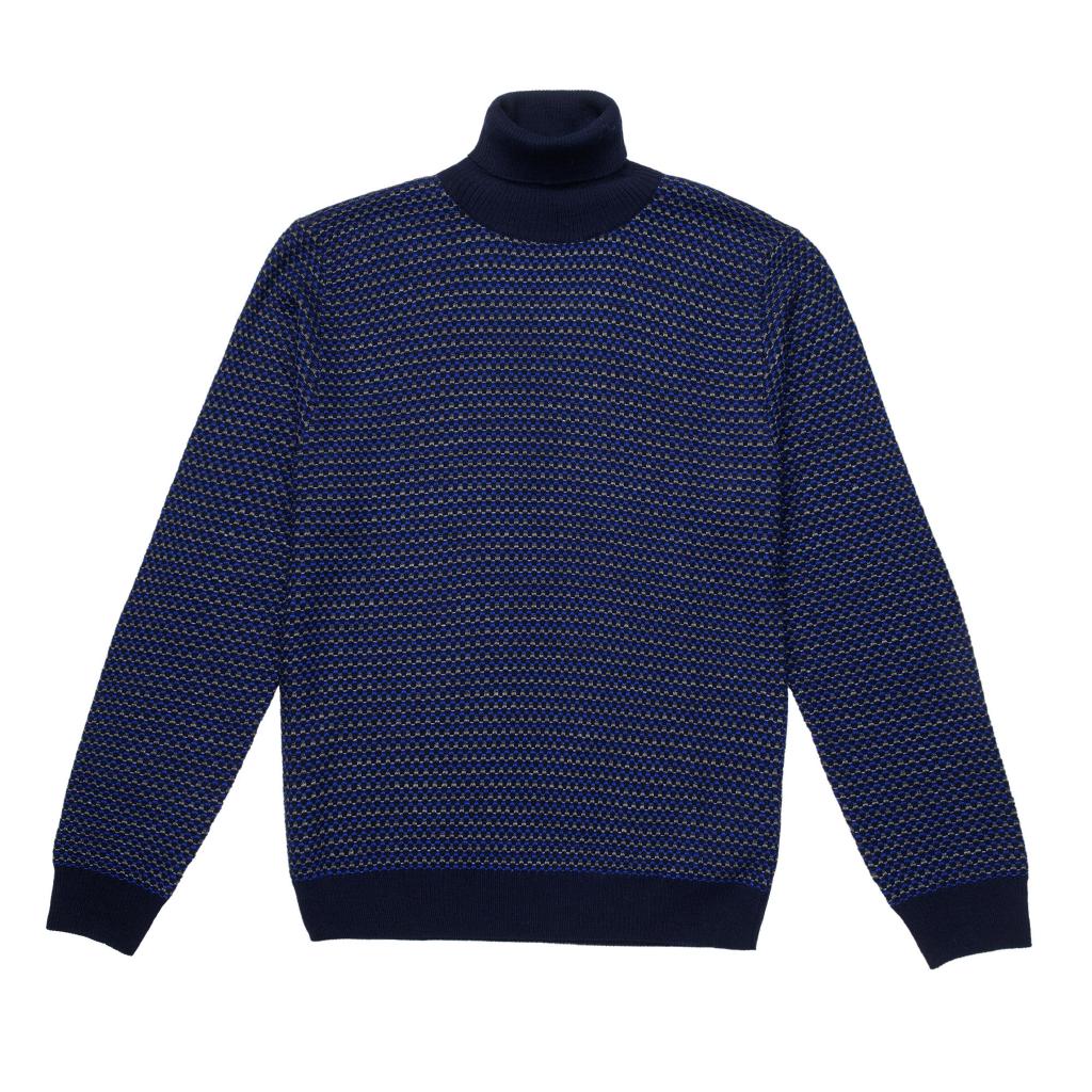 Maglioncino a collo alto per uomo fimato Manuel Ritz, colore blu scuro in risalto con la fantasia blu e bianca orizzontale. modello: 3932M533-253830 Collezione AutunnoInverno 202526