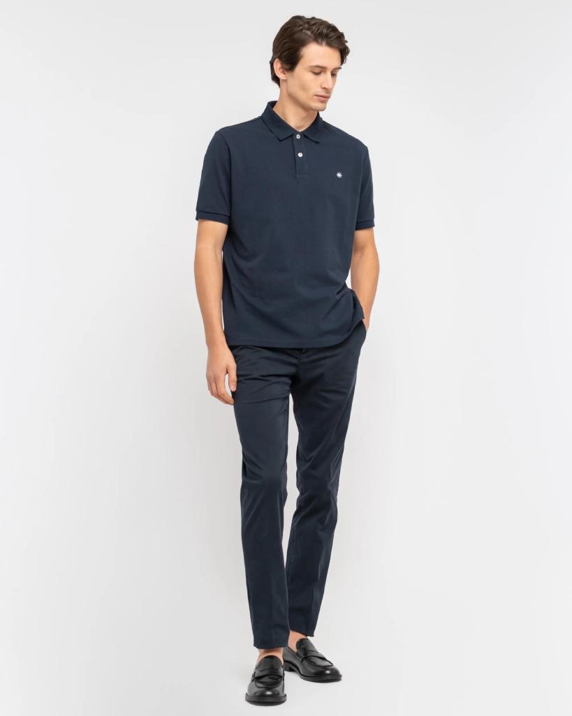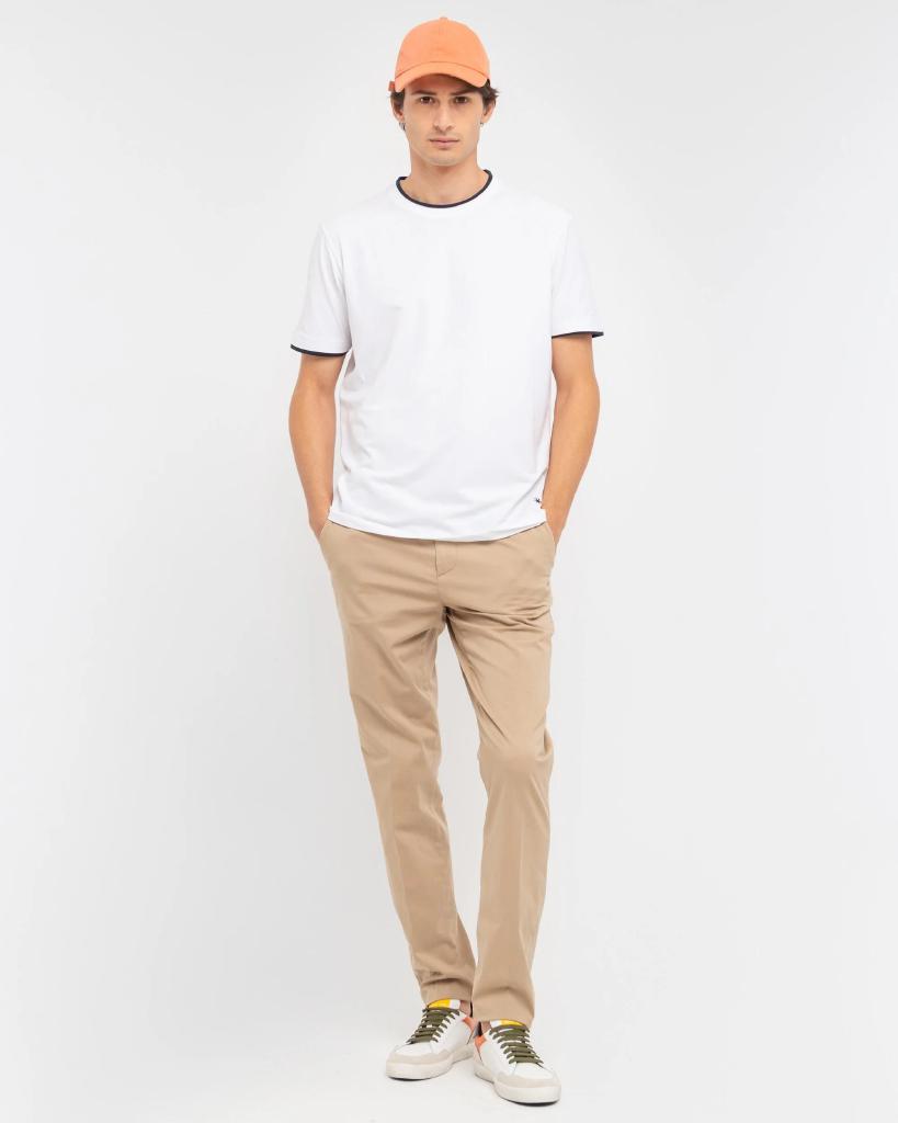 Pantalone chino skinny fit tinto capo, due tasche america frontali, due a filo sul retro con bottoncino, chiusura con zip e bottone,