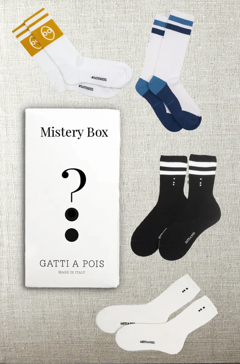 Rimarrete Stupiti dalla Bellezza delle Calze che riceverete a questo prezzo incredibile.. Scegli il Tuo Mistery Box e riceverai un Box da N.4 CALZE SPORTIVE Gatti a Pois dai Filati Naturali e Made in Italy. Mistery Box composto da 4 Calze a lunghezza Americana scelte tra gli Ultimi Modelli che potrete visionare sul sito, inserisci la taglia e noi sceglieremo per Te, i colori e i Modelli! E tu risparmi ancora di più! CONSEGNA IN 24/48 ORE! Il Cotone Pettinato Italiano, adatto a qualsiasi temperatura, riuscirà a mantenere i Vostri piedi asciutti e in totale Comfort. Gatti a Pois ha…