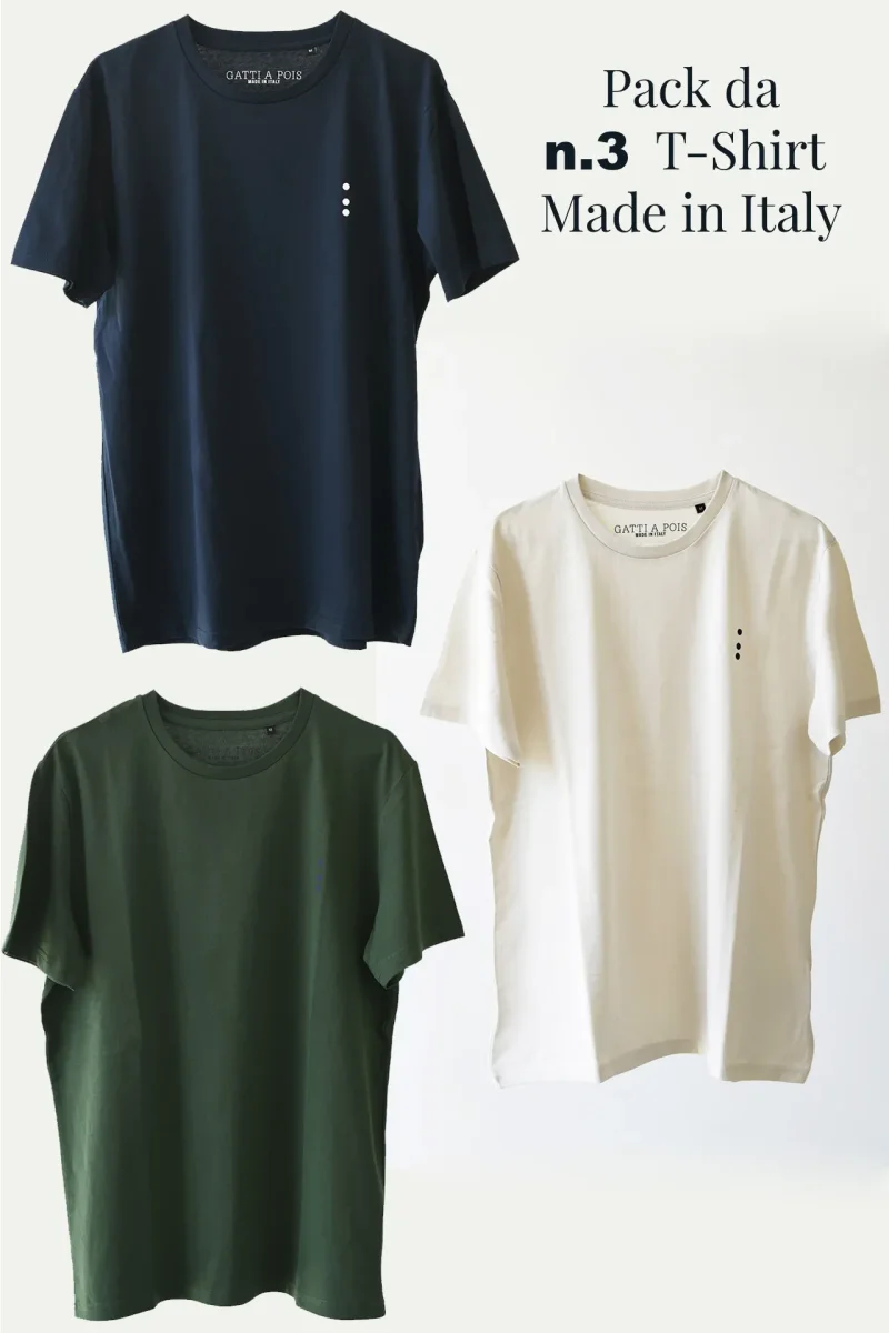Pack da N.3 T-Shirt in Puro Cotone Pregiato con Iniziali o Senza!