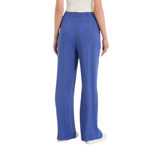 Pantalone palazzo in viscosa Ragno con fantasia micro esagoni, vita elasticizzata e linea fluida. Morbido, leggero e raffinato, accompagna la silhouette con naturale eleganza, regalando comfort e stile in ogni momento della giornata.