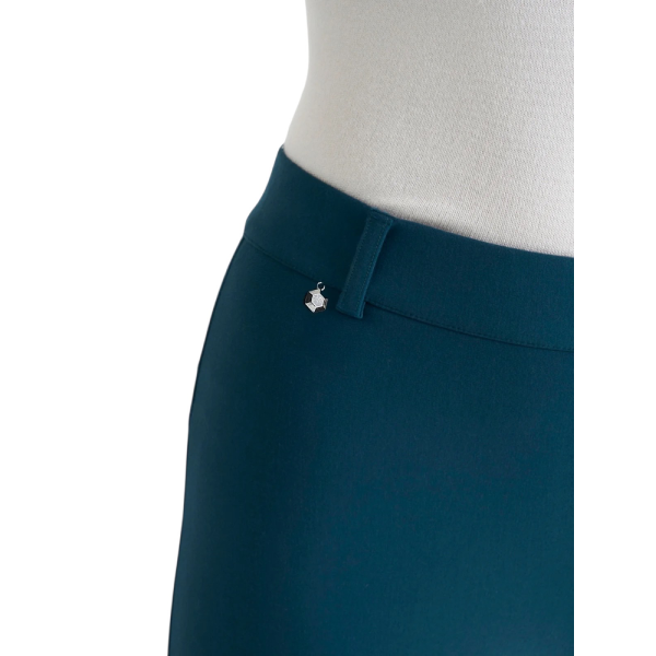 Il pantalone è realizzato nell’innovativo tessuto Compact punto Milano, incredibilmente compatto ed elasticizzato. Questo materiale assicura una vestibilità sempre perfetta, resistenza all’usura e un aspetto ordinato anche dopo numerosi utilizzi. Infatti, il tessuto è ingualcibile e pratico, ideale per accompagnare la quotidianità con comfort ed eleganza.