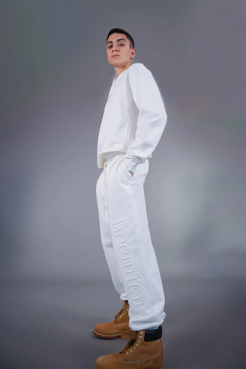 Le tasche laterali a filetto con taglio vivo e il ricamo in rilievo del logo Heemia sulla gamba introducono dettagli distintivi, mentre la tasca posteriore rifinita con l’iconico logo rosso completa il design con un tratto esclusivo.