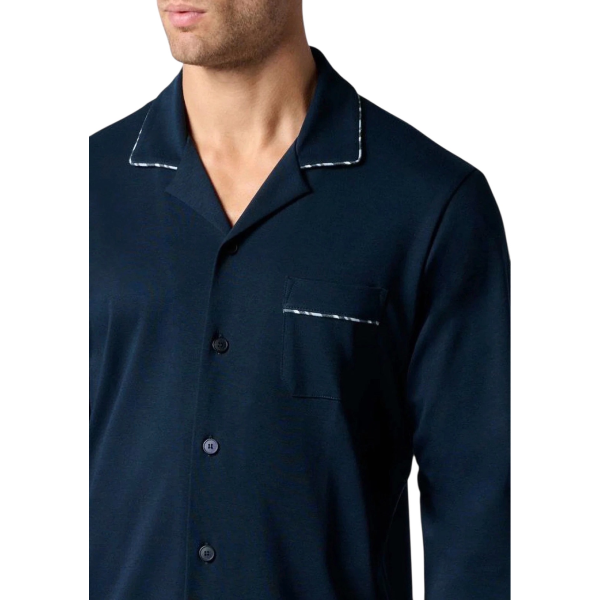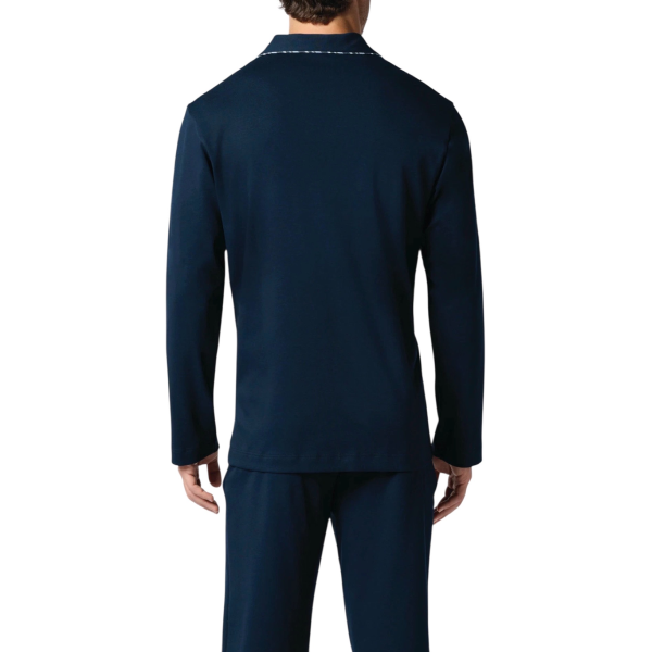 Scopri su delvescovointimo.it il pigiama aperto in cotone invernale Perofil, realizzato in caldo interlock di cotone per un comfort superiore. Il modello presenta una giacca con colletto e profili a contrasto e un pantalone tinta unita, per uno stile classico e raffinato ideale nelle sere più fredde.