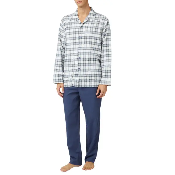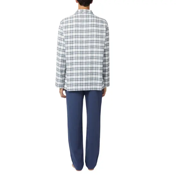 Pigiama flanella Perofil da uomo con fantasia scozzese. Morbido, caldo ed elegante, con apertura frontale e pantaloni regolabili per un comfort su misura.