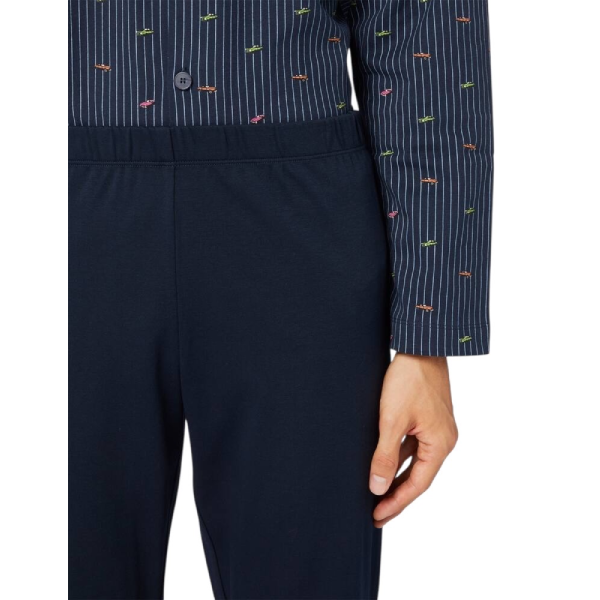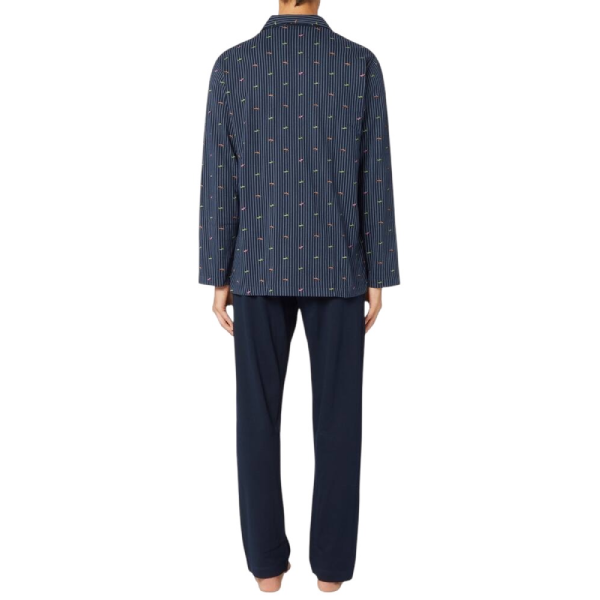 Il pigiama uomo cotone invernale Perofil esprime eleganza e comfort. Modello aperto con collo classico, giacca stampata e pantalone tinta unita in morbido cotone interlock, perfetto per le notti più fredde.