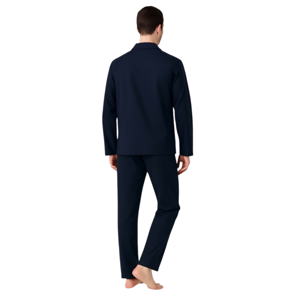 Il pigiama uomo cotone invernale Perofil combina eleganza e morbidezza. Modello aperto con collo, in tinta unita, realizzato in caldo cotone interlock per un comfort naturale.