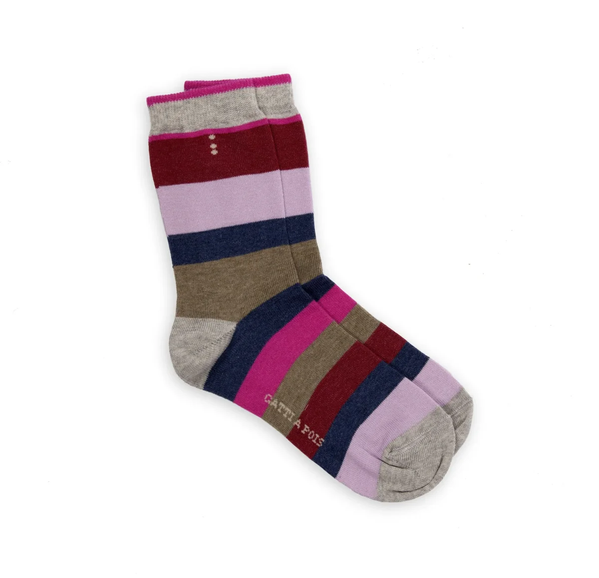 TIPOLOGIA: CALZA lunghezza media BAMBINA STAGIONE: INVERNO/PRIMAVERA MATERIALE: COTONE PETTINATO FANTASIA: RIGHE COLORE: CILIEGIA, GRIGIO MELANGE, ROSA E BLU BIMBO Calza da bambina a 3/4, fatta a mano in Italia in cotone pettinato CILIEGIA, GRIGIO MELANGE, ROSA E BLU BIMBO. Pattern a RIGHE dai colori allegri e decisi. COMPOSIZIONE: 80% Cotone 17%Poliammide 3% Elastan Manutenzione: lavare a mano o in lavatrice temperatura massimo 40º. NON UTILIZZARE ASCIUGATRICE. Non stirare. Le Princess, sono calze di Gatti a Pois ideate e realizzate per i nostri bambini. Sono stati utilizzati filati di primissimo livello e totalmente Made in Italy, dalla progettazione del disegno…