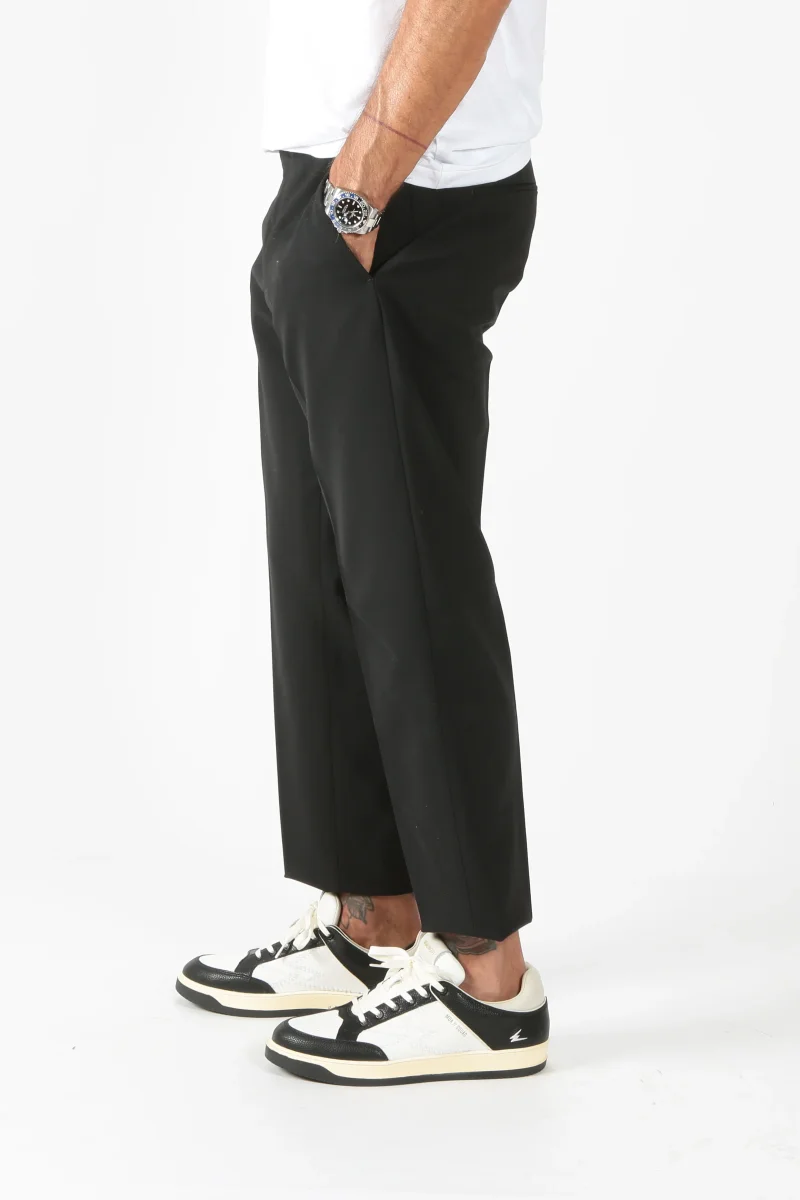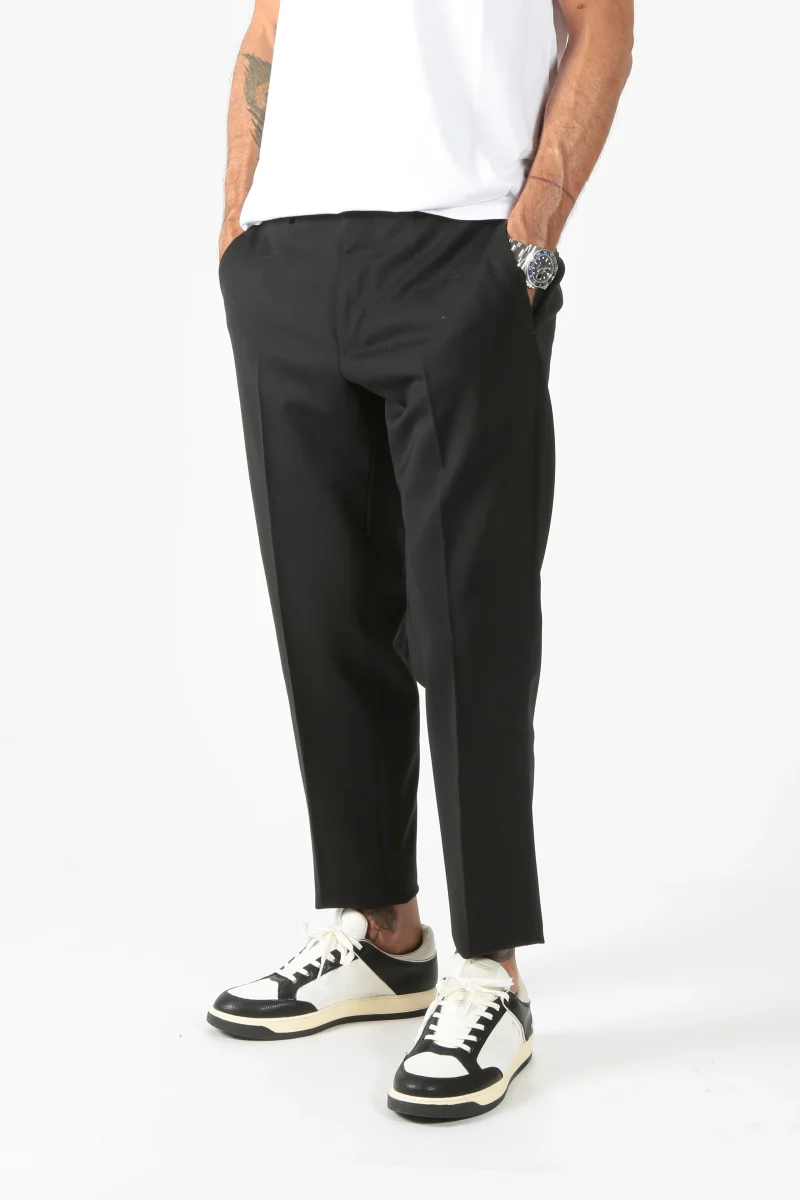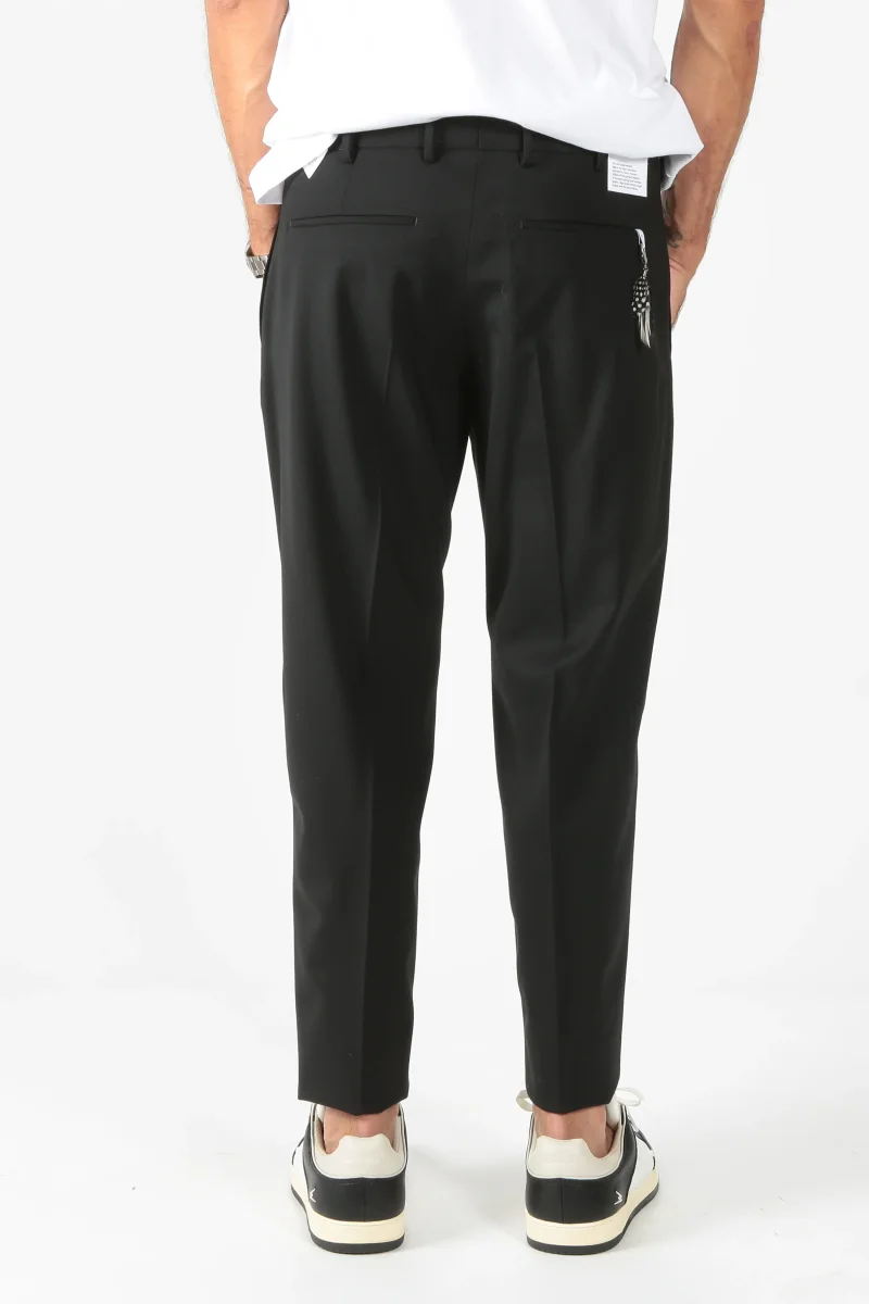 Pantalone PT Torino modello rebel in lana vergine. Passanti in vita. Chiusura con zip e gancio. Tasca alla francese sui fianchi. Tasche a filetto nella parte posteriore. Gamba morbida che si stringe sul fondo. Piega stirata davanti e dietro.