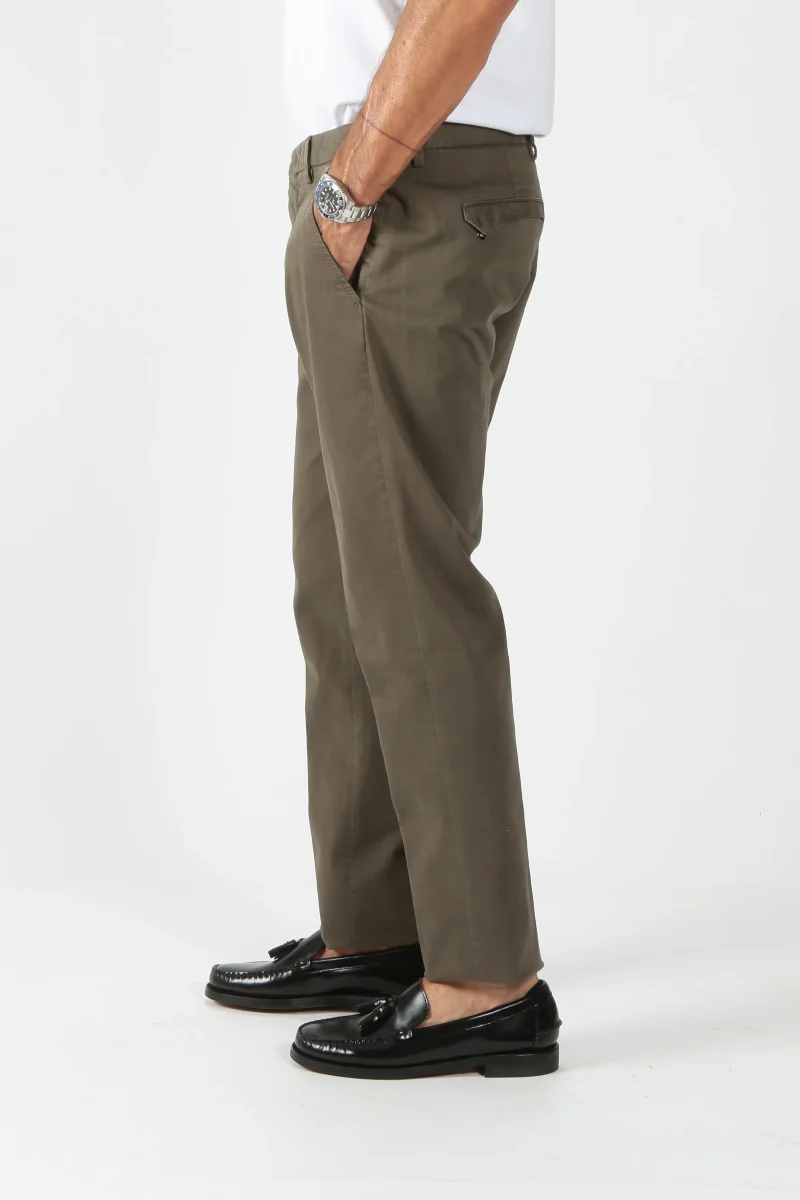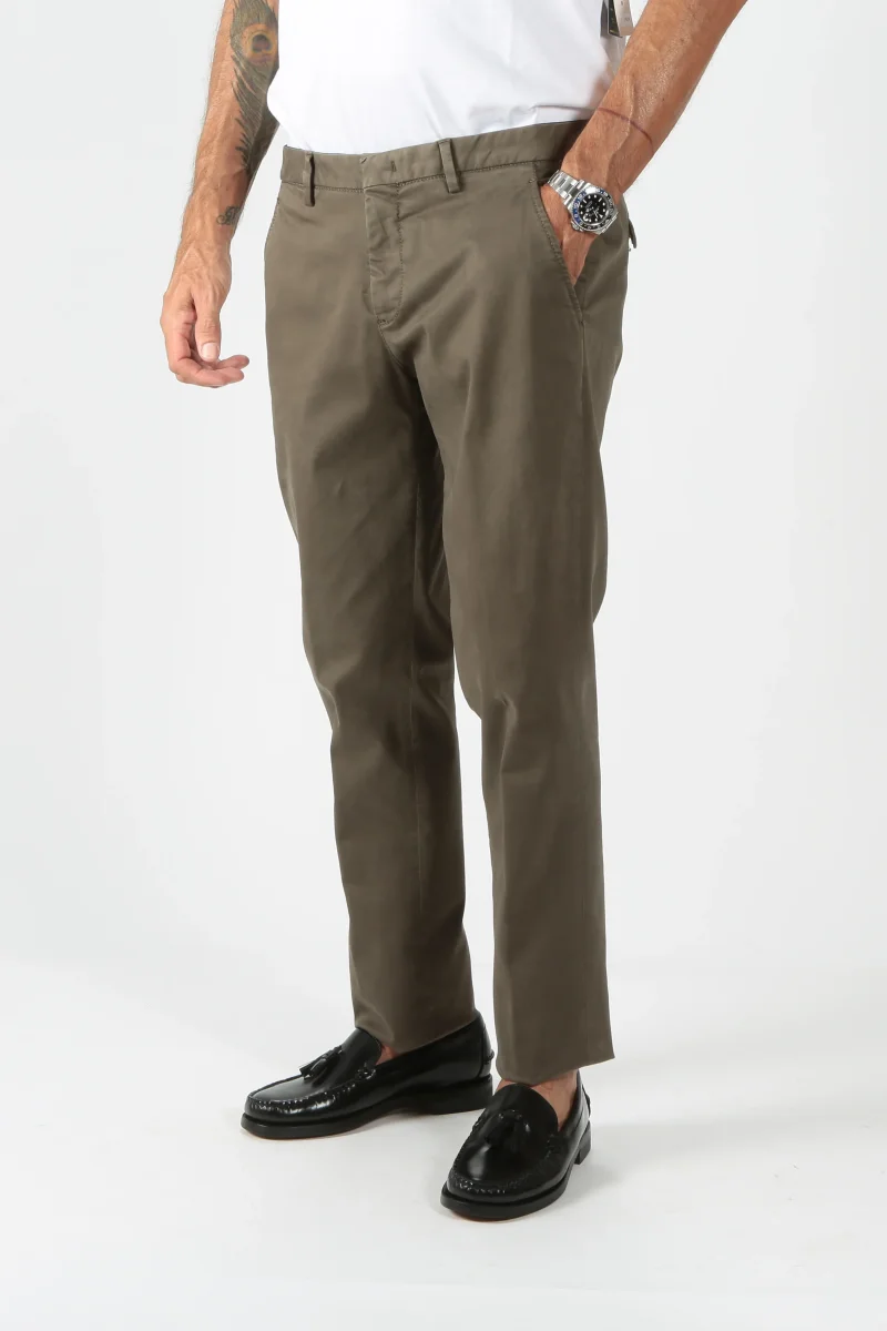 Pantalone PT Torino modello wonder in cotone mano pesca. Passanti in vita. Chiusura con zip e gancio. Tasca alla francese sui fianchi. Tasche con piccola patta nella parte posteriore. Gamba asciutta. Piega stirata davanti e dietro. Disponibile anche nel colore grigio.